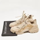 Dior’s D Connect sneakers combine neoprene with a sculpted rubber sole for a futuristic feel. The beige upper offers flexibility and a sleek, modern finish.Certified by The Luxury Closet - This item has gone through a detailed authentication process overseen by our experts. We offer a lifetime guarantee of authenticity on all our items. Import duties, taxes and charges are not included in the item price. These charges are the buyers responsibility. Please check with your country’s customs office to determine what these additional cost will be prior to buying. Our eBay Store About Us Contact Us Add to Favorite Sellers Dior Beige Neoprene and Rubber D-Connect Low Top Sneakers Size 38 $433.4 Dior’s D Connect sneakers combine neoprene with a sculpted rubber sole for a futuristic feel. The beige upper offers flexibility and a sleek, modern finish. Product Details Brand Color Beige Dimensions Material Neoprene, Rubber Size 38 Outsole Width 10 cm Outsole Length 29 cm Heel Height Includes The Luxury Closet Packaging Certified by The Luxury Closet This item has gone through a detailed authentication process overseen by our experts. We offer a lifetime guarantee of authenticity on all our items. How We Check The in-house team of experts at The Luxury Closet is highly trained to verify the authenticity and the condition of the luxury products. They ensure that only 100% authentic items are put on sale.The evaluation process is unique with its own mix of assessment criteria and differs according to the category. Each item is evaluated based on the following combination of hallmarks, hardware, stitching, symmetry, material, craftsmanship, stamping, codes, hologram stickers, and packaging. Our authenticators also check if the items have been modified or amended (e.g., aftermarket diamonds, replaced batteries, repaired bags, etc.) International Buyers Import duties, taxes and charges are not included in the item price. These charges are the buyers responsibility. Please check with your country’s customs office to determine what these additional cost will be prior to buying.