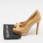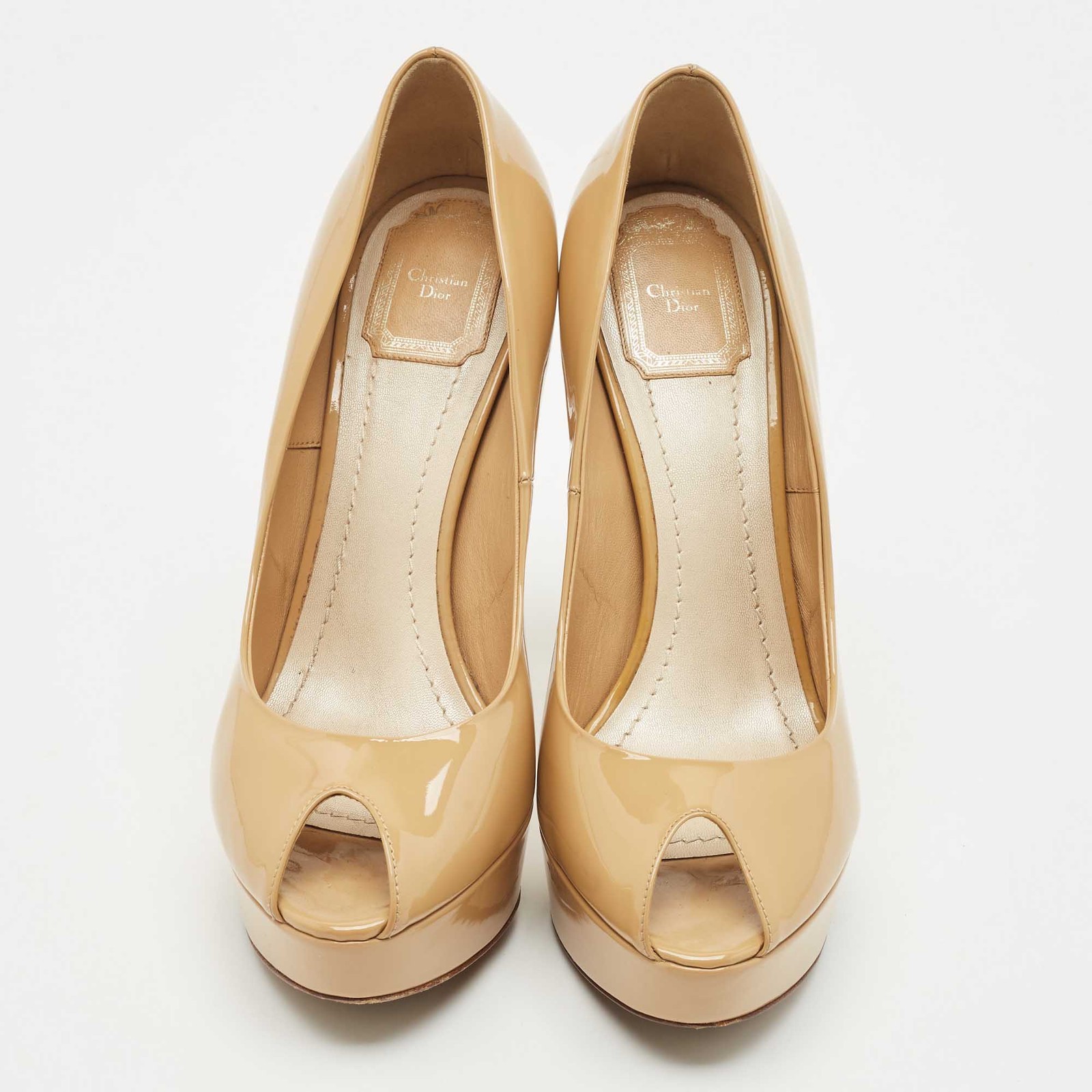 Make a chic style statement with these designer pumps. They showcase sturdy heels and durable soles, perfect for your fashionable outingsCertified by The Luxury Closet - This item has gone through a detailed authentication process overseen by our experts. We offer a lifetime guarantee of authenticity on all our items. Import duties, taxes and charges are not included in the item price. These charges are the buyers responsibility. Please check with your country’s customs office to determine what these additional cost will be prior to buying. Our eBay Store About Us Contact Us Add to Favorite Sellers Dior Beige Patent Leather Miss Dior Peep Toe Platform Pumps Size 40 $246.4 Make a chic style statement with these designer pumps. They showcase sturdy heels and durable soles, perfect for your fashionable outings Product Details Brand Color Beige Dimensions Material Patent Leather Size 40 Outsole Width Outsole Length Heel Height Includes Certified by The Luxury Closet This item has gone through a detailed authentication process overseen by our experts. We offer a lifetime guarantee of authenticity on all our items. How We Check The in-house team of experts at The Luxury Closet is highly trained to verify the authenticity and the condition of the luxury products. They ensure that only 100% authentic items are put on sale.The evaluation process is unique with its own mix of assessment criteria and differs according to the category. Each item is evaluated based on the following combination of hallmarks, hardware, stitching, symmetry, material, craftsmanship, stamping, codes, hologram stickers, and packaging. Our authenticators also check if the items have been modified or amended (e.g., aftermarket diamonds, replaced batteries, repaired bags, etc.) International Buyers Import duties, taxes and charges are not included in the item price. These charges are the buyers responsibility. Please check with your country’s customs office to determine what these additional cost will be prior to buying.