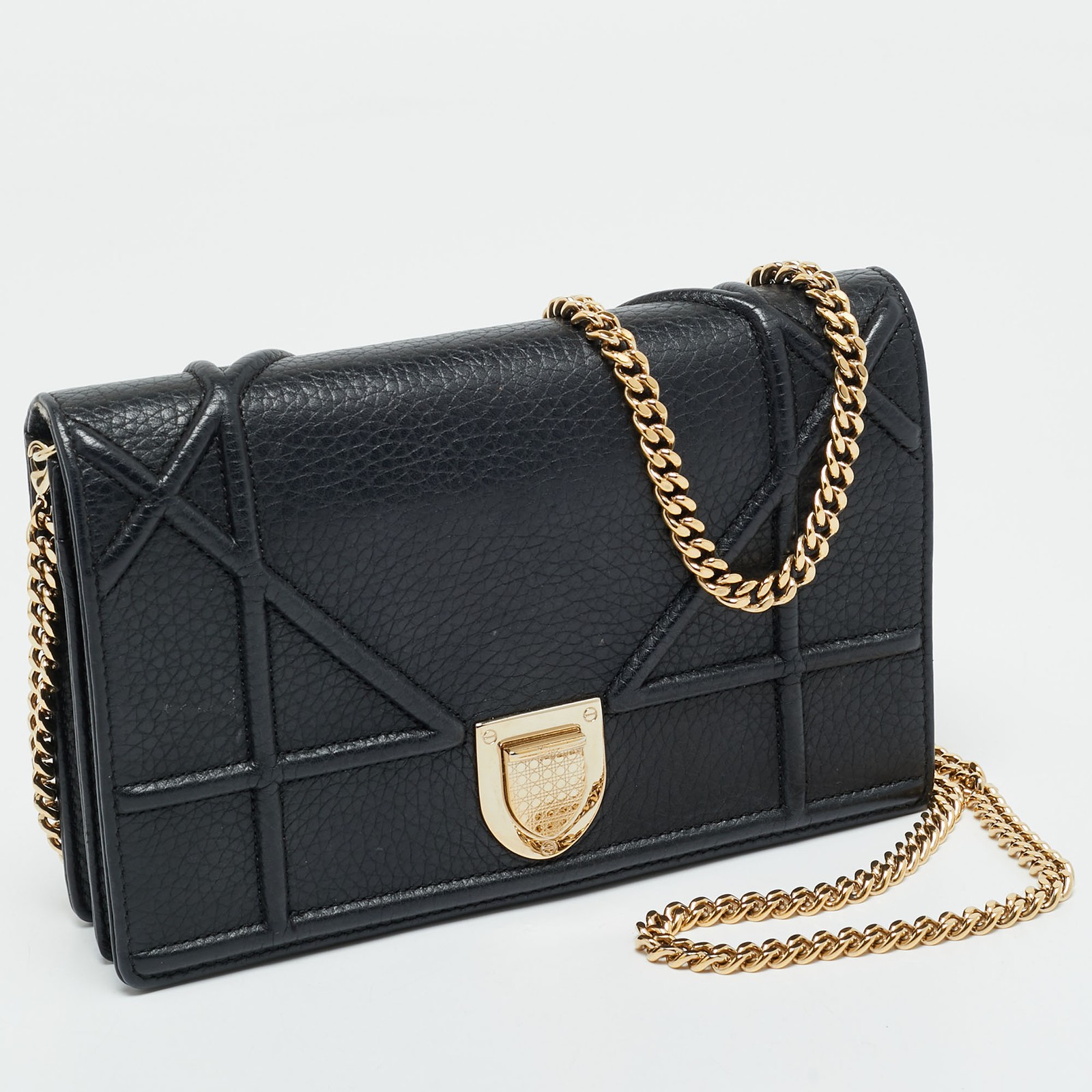 Introduced in Spring/Summer 2015 runaway, the Diorama embodies refined shape and celebrates femininity through its artistic design. The signature Cannage pattern and the grey tone accents bring out the appeal of this Dior bag. Made from patent leather, it features a branded lock closure at the front, and its leather interior makes for a luxurious abode for your party essentials.Certified by The Luxury Closet - This item has gone through a detailed authentication process overseen by our experts. We offer a lifetime guarantee of authenticity on all our items. Import duties, taxes and charges are not included in the item price. These charges are the buyers responsibility. Please check with your country’s customs office to determine what these additional cost will be prior to buying. Our eBay Store About Us Contact Us Add to Favorite Sellers Dior Black Cannage Leather Diorama Wallet on Chain $808.5 Introduced in Spring/Summer 2015 runaway, the Diorama embodies refined shape and celebrates femininity through its artistic design. The signature Cannage pattern and the grey tone accents bring out the appeal of this Dior bag. Made from patent leather, it features a branded lock closure at the front, and its leather interior makes for a luxurious abode for your party essentials. Product Details Brand Color Black Dimensions Material Leather Size Small Outsole Width Outsole Length Heel Height Includes Certified by The Luxury Closet This item has gone through a detailed authentication process overseen by our experts. We offer a lifetime guarantee of authenticity on all our items. How We Check The in-house team of experts at The Luxury Closet is highly trained to verify the authenticity and the condition of the luxury products. They ensure that only 100% authentic items are put on sale.The evaluation process is unique with its own mix of assessment criteria and differs according to the category. Each item is evaluated based on the following combination of hallmarks, hardware, stitching, symmetry, material, craftsmanship, stamping, codes, hologram stickers, and packaging. Our authenticators also check if the items have been modified or amended (e.g., aftermarket diamonds, replaced batteries, repaired bags, etc.) International Buyers Import duties, taxes and charges are not included in the item price. These charges are the buyers responsibility. Please check with your country’s customs office to determine what these additional cost will be prior to buying.