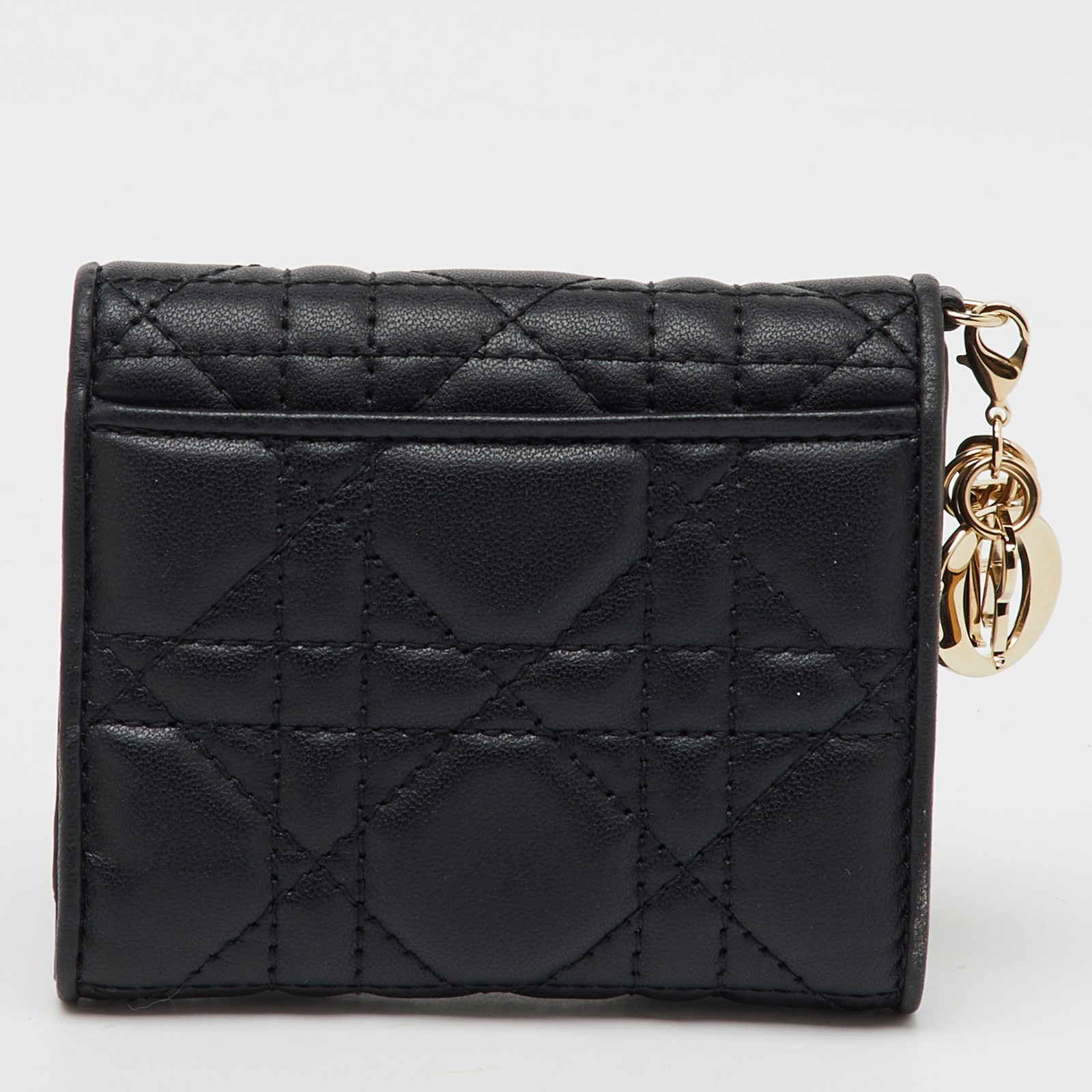 Crafted in classic Cannage quilted leather, this Lady Dior trifold wallet combines elegance and function in a compact form. The soft black leather, gold tone charms, and meticulous finish reflect Dior’s house codes. A timeless everyday companion that fits effortlessly in your handbag.Certified by The Luxury Closet - This item has gone through a detailed authentication process overseen by our experts. We offer a lifetime guarantee of authenticity on all our items. Import duties, taxes and charges are not included in the item price. These charges are the buyers responsibility. Please check with your country’s customs office to determine what these additional cost will be prior to buying. Our eBay Store About Us Contact Us Add to Favorite Sellers Dior Black Cannage Leather Lady Dior Trifold Wallet $557.7 Crafted in classic Cannage quilted leather, this Lady Dior trifold wallet combines elegance and function in a compact form. The soft black leather, gold tone charms, and meticulous finish reflect Dior’s house codes. A timeless everyday companion that fits effortlessly in your handbag. Product Details Brand Color Black Dimensions Material Leather Size Outsole Width Outsole Length Heel Height Includes Certified by The Luxury Closet This item has gone through a detailed authentication process overseen by our experts. We offer a lifetime guarantee of authenticity on all our items. How We Check The in-house team of experts at The Luxury Closet is highly trained to verify the authenticity and the condition of the luxury products. They ensure that only 100% authentic items are put on sale.The evaluation process is unique with its own mix of assessment criteria and differs according to the category. Each item is evaluated based on the following combination of hallmarks, hardware, stitching, symmetry, material, craftsmanship, stamping, codes, hologram stickers, and packaging. Our authenticators also check if the items have been modified or amended (e.g., aftermarket diamonds, replaced batteries, repaired bags, etc.) International Buyers Import duties, taxes and charges are not included in the item price. These charges are the buyers responsibility. Please check with your country’s customs office to determine what these additional cost will be prior to buying.