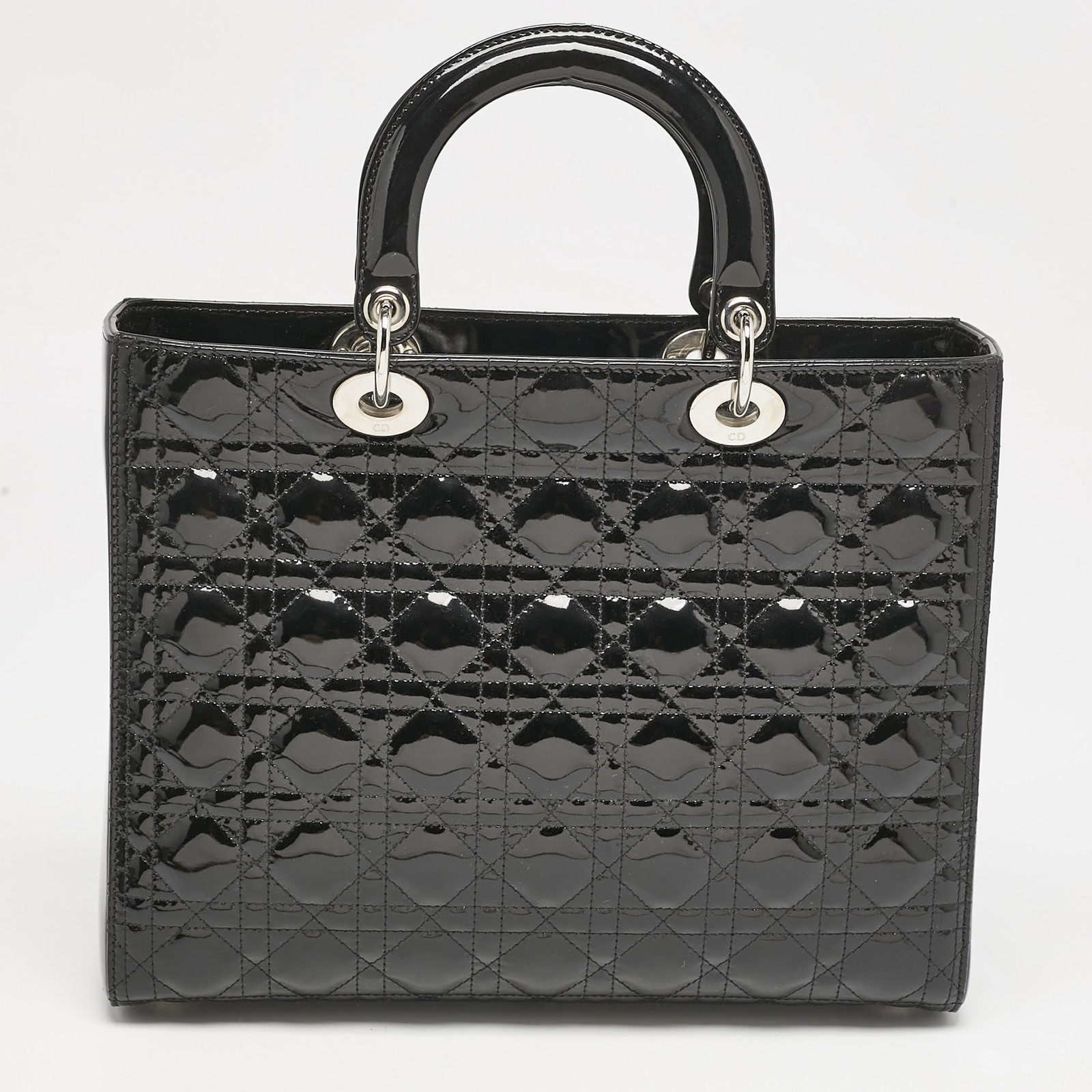 This Large Lady Dior tote shines in glossy black patent leather, topped with the famous Cannage stitching and swinging letter charms that catch the eye.Certified by The Luxury Closet - This item has gone through a detailed authentication process overseen by our experts. We offer a lifetime guarantee of authenticity on all our items. Import duties, taxes and charges are not included in the item price. These charges are the buyers responsibility. Please check with your country’s customs office to determine what these additional cost will be prior to buying. Our eBay Store About Us Contact Us Add to Favorite Sellers Dior Black Cannage Patent Leather Large Lady Dior Tote $3165.8 This Large Lady Dior tote shines in glossy black patent leather, topped with the famous Cannage stitching and swinging letter charms that catch the eye. Product Details Brand Color Black Dimensions Material Patent Leather Size Large Outsole Width Outsole Length Heel Height Includes Certified by The Luxury Closet This item has gone through a detailed authentication process overseen by our experts. We offer a lifetime guarantee of authenticity on all our items. How We Check The in-house team of experts at The Luxury Closet is highly trained to verify the authenticity and the condition of the luxury products. They ensure that only 100% authentic items are put on sale.The evaluation process is unique with its own mix of assessment criteria and differs according to the category. Each item is evaluated based on the following combination of hallmarks, hardware, stitching, symmetry, material, craftsmanship, stamping, codes, hologram stickers, and packaging. Our authenticators also check if the items have been modified or amended (e.g., aftermarket diamonds, replaced batteries, repaired bags, etc.) International Buyers Import duties, taxes and charges are not included in the item price. These charges are the buyers responsibility. Please check with your country’s customs office to determine what these additional cost will be prior to buying.