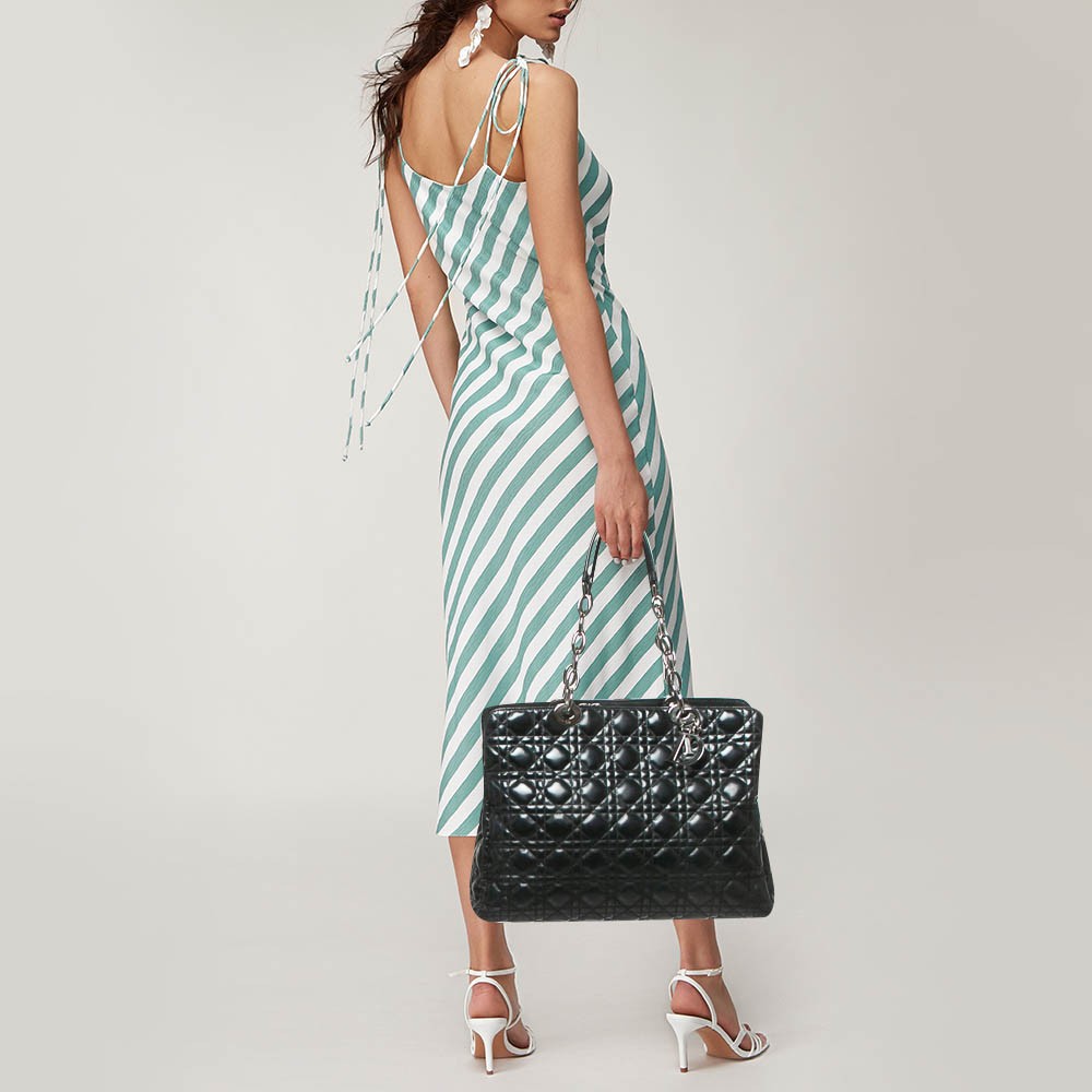 The shopper tote to buy today is this one by Dior Crafted with expertise, the Lady Dior tote has the signature Cannage pattern on patent leather, two chain leather handles on top, a spacious nylon interior, and brand letter charms.Certified by The Luxury Closet - This item has gone through a detailed authentication process overseen by our experts. We offer a lifetime guarantee of authenticity on all our items. Import duties, taxes and charges are not included in the item price. These charges are the buyers responsibility. Please check with your country’s customs office to determine what these additional cost will be prior to buying. Our eBay Store About Us Contact Us Add to Favorite Sellers Dior Black Cannage Patent Leather Large Soft Lady Dior Shopping Tote $1222.1 The shopper tote to buy today is this one by Dior Crafted with expertise, the Lady Dior tote has the signature Cannage pattern on patent leather, two chain leather handles on top, a spacious nylon interior, and brand letter charms. Product Details Brand Color Black Dimensions Material Patent Leather Size Large Outsole Width Outsole Length Heel Height Includes Certified by The Luxury Closet This item has gone through a detailed authentication process overseen by our experts. We offer a lifetime guarantee of authenticity on all our items. How We Check The in-house team of experts at The Luxury Closet is highly trained to verify the authenticity and the condition of the luxury products. They ensure that only 100% authentic items are put on sale.The evaluation process is unique with its own mix of assessment criteria and differs according to the category. Each item is evaluated based on the following combination of hallmarks, hardware, stitching, symmetry, material, craftsmanship, stamping, codes, hologram stickers, and packaging. Our authenticators also check if the items have been modified or amended (e.g., aftermarket diamonds, replaced batteries, repaired bags, etc.) International Buyers Import duties, taxes and charges are not included in the item price. These charges are the buyers responsibility. Please check with your country’s customs office to determine what these additional cost will be prior to buying.
