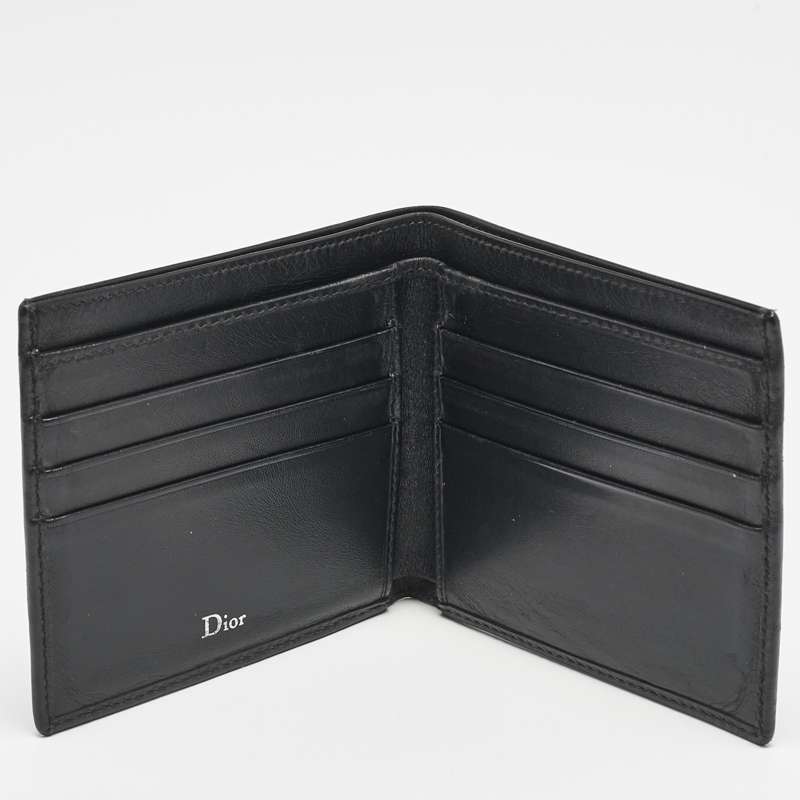 The Dior wallet exudes sophistication with its understated elegance. Crafted from high quality black leather, the wallet features the iconic Dior logo embossed on the exterior. With a bifold design that includes ample card slots and a bill compartment, it’s the perfect blend of functionality and luxury.Certified by The Luxury Closet - This item has gone through a detailed authentication process overseen by our experts. We offer a lifetime guarantee of authenticity on all our items. Import duties, taxes and charges are not included in the item price. These charges are the buyers responsibility. Please check with your country’s customs office to determine what these additional cost will be prior to buying. Our eBay Store About Us Contact Us Add to Favorite Sellers Dior Black Logo Embossed Leather Bifold Wallet $216.7 The Dior wallet exudes sophistication with its understated elegance. Crafted from high quality black leather, the wallet features the iconic Dior logo embossed on the exterior. With a bifold design that includes ample card slots and a bill compartment, it’s the perfect blend of functionality and luxury. Product Details Brand Color Black Dimensions Height: 9.5 cm, Width: 1 cm, Length: 10.5 cm Material Leather Size Outsole Width Outsole Length Heel Height Includes The Luxury Closet Packaging Certified by The Luxury Closet This item has gone through a detailed authentication process overseen by our experts. We offer a lifetime guarantee of authenticity on all our items. How We Check The in-house team of experts at The Luxury Closet is highly trained to verify the authenticity and the condition of the luxury products. They ensure that only 100% authentic items are put on sale.The evaluation process is unique with its own mix of assessment criteria and differs according to the category. Each item is evaluated based on the following combination of hallmarks, hardware, stitching, symmetry, material, craftsmanship, stamping, codes, hologram stickers, and packaging. Our authenticators also check if the items have been modified or amended (e.g., aftermarket diamonds, replaced batteries, repaired bags, etc.) International Buyers Import duties, taxes and charges are not included in the item price. These charges are the buyers responsibility. Please check with your country’s customs office to determine what these additional cost will be prior to buying.