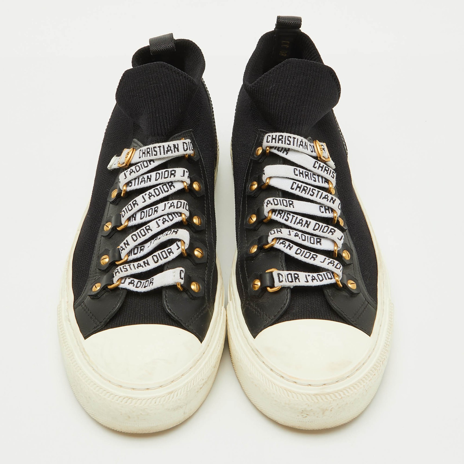 Presented in a classic silhouette, these Dior sneakers are a seamless combination of luxury, comfort, and style. These sneakers are designed with signature details and comfortable insoles.Certified by The Luxury Closet - This item has gone through a detailed authentication process overseen by our experts. We offer a lifetime guarantee of authenticity on all our items. Import duties, taxes and charges are not included in the item price. These charges are the buyers responsibility. Please check with your country’s customs office to determine what these additional cost will be prior to buying. Our eBay Store About Us Contact Us Add to Favorite Sellers Dior Black Knit Fabric and Leather Walk'n'Dior Sneakers Size 38 $404.8 Presented in a classic silhouette, these Dior sneakers are a seamless combination of luxury, comfort, and style. These sneakers are designed with signature details and comfortable insoles. Product Details Brand Color Black Dimensions Material Knit Fabric, Leather Size 38 Outsole Width 10 cm Outsole Length 26.5 cm Heel Height Includes The Luxury Closet Packaging Certified by The Luxury Closet This item has gone through a detailed authentication process overseen by our experts. We offer a lifetime guarantee of authenticity on all our items. How We Check The in-house team of experts at The Luxury Closet is highly trained to verify the authenticity and the condition of the luxury products. They ensure that only 100% authentic items are put on sale.The evaluation process is unique with its own mix of assessment criteria and differs according to the category. Each item is evaluated based on the following combination of hallmarks, hardware, stitching, symmetry, material, craftsmanship, stamping, codes, hologram stickers, and packaging. Our authenticators also check if the items have been modified or amended (e.g., aftermarket diamonds, replaced batteries, repaired bags, etc.) International Buyers Import duties, taxes and charges are not included in the item price. These charges are the buyers responsibility. Please check with your country’s customs office to determine what these additional cost will be prior to buying.