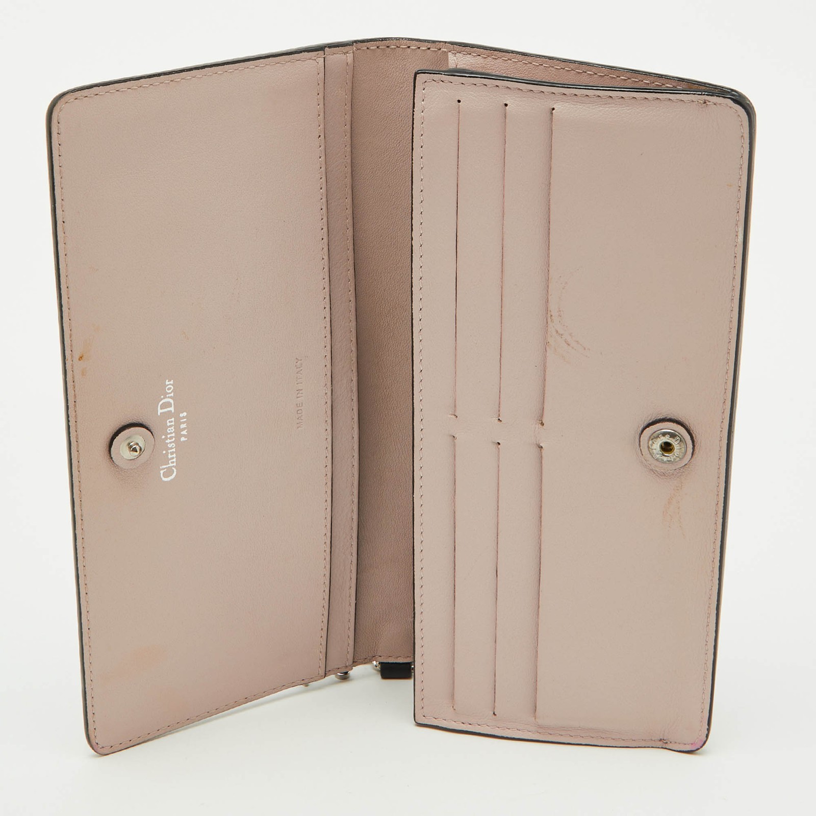 Keep your essentials secured in style with this sleek wallet from Dior. Featuring soft black leather and detailing, its a sophisticated accessory that blends luxury with practicality.Certified by The Luxury Closet - This item has gone through a detailed authentication process overseen by our experts. We offer a lifetime guarantee of authenticity on all our items. Import duties, taxes and charges are not included in the item price. These charges are the buyers responsibility. Please check with your country’s customs office to determine what these additional cost will be prior to buying. Our eBay Store About Us Contact Us Add to Favorite Sellers Dior Black Leather Diorissimo Long Wallet $301.4 Keep your essentials secured in style with this sleek wallet from Dior. Featuring soft black leather and detailing, its a sophisticated accessory that blends luxury with practicality. Product Details Brand Color Black Dimensions Material Leather Size Outsole Width Outsole Length Heel Height Includes Certified by The Luxury Closet This item has gone through a detailed authentication process overseen by our experts. We offer a lifetime guarantee of authenticity on all our items. How We Check The in-house team of experts at The Luxury Closet is highly trained to verify the authenticity and the condition of the luxury products. They ensure that only 100% authentic items are put on sale.The evaluation process is unique with its own mix of assessment criteria and differs according to the category. Each item is evaluated based on the following combination of hallmarks, hardware, stitching, symmetry, material, craftsmanship, stamping, codes, hologram stickers, and packaging. Our authenticators also check if the items have been modified or amended (e.g., aftermarket diamonds, replaced batteries, repaired bags, etc.) International Buyers Import duties, taxes and charges are not included in the item price. These charges are the buyers responsibility. Please check with your country’s customs office to determine what these additional cost will be prior to buying.