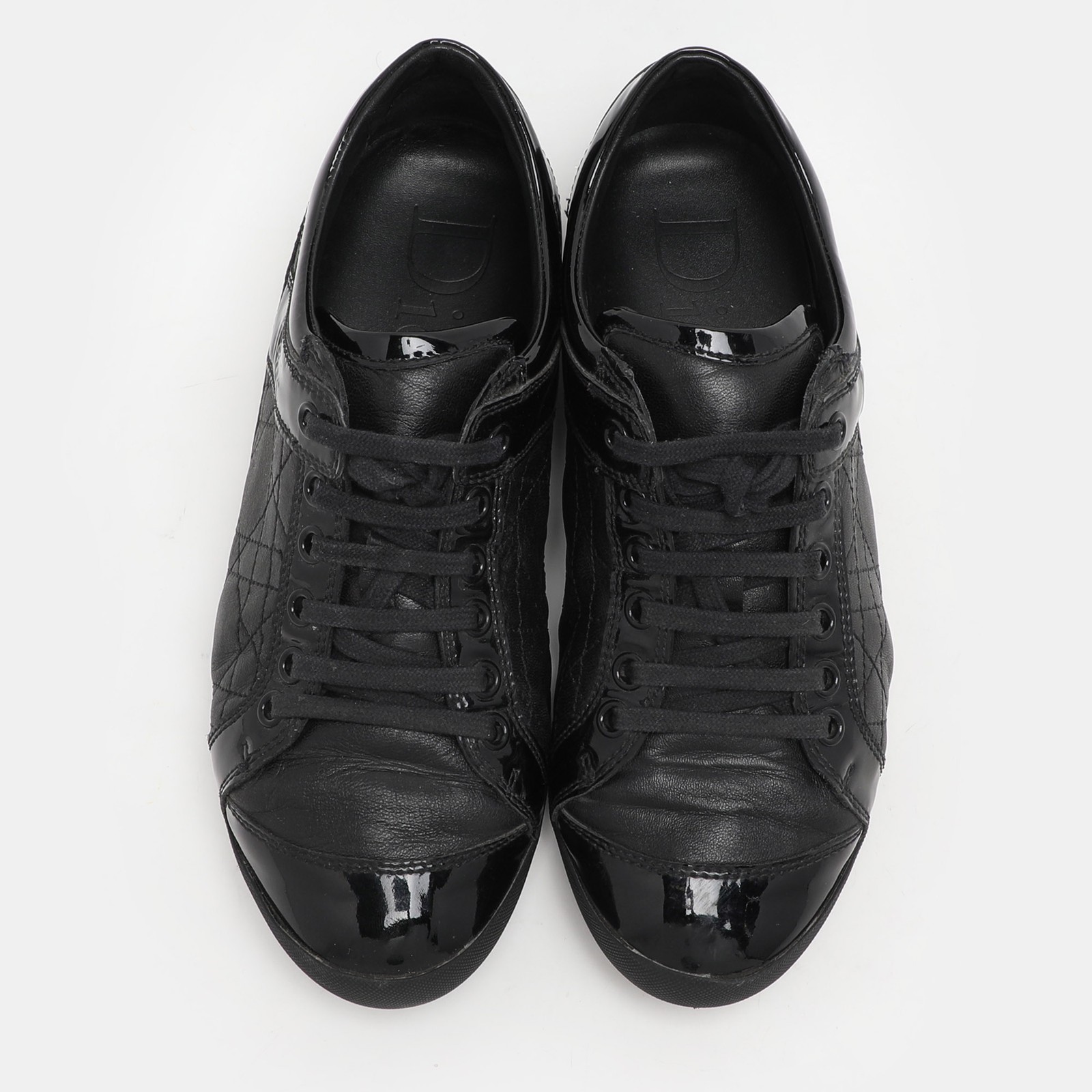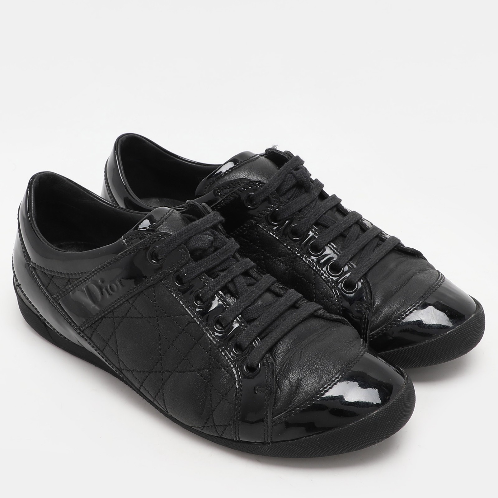 Coming in a classic silhouette, these designer sneakers are a seamless combination of luxury, comfort, and style. These sneakers are designed with signature details and comfortable insoles.Certified by The Luxury Closet - This item has gone through a detailed authentication process overseen by our experts. We offer a lifetime guarantee of authenticity on all our items. Import duties, taxes and charges are not included in the item price. These charges are the buyers responsibility. Please check with your country’s customs office to determine what these additional cost will be prior to buying. Our eBay Store About Us Contact Us Add to Favorite Sellers Dior Black Leather and Patent Leather Low Top Sneakers Size 36.5 $165 Coming in a classic silhouette, these designer sneakers are a seamless combination of luxury, comfort, and style. These sneakers are designed with signature details and comfortable insoles. Product Details Brand Color Black Dimensions Material Leather, Patent Leather Size 36.5 Outsole Width 8.5 cm Outsole Length 25.5 cm Heel Height Includes The Luxury Closet Packaging Certified by The Luxury Closet This item has gone through a detailed authentication process overseen by our experts. We offer a lifetime guarantee of authenticity on all our items. How We Check The in-house team of experts at The Luxury Closet is highly trained to verify the authenticity and the condition of the luxury products. They ensure that only 100% authentic items are put on sale.The evaluation process is unique with its own mix of assessment criteria and differs according to the category. Each item is evaluated based on the following combination of hallmarks, hardware, stitching, symmetry, material, craftsmanship, stamping, codes, hologram stickers, and packaging. Our authenticators also check if the items have been modified or amended (e.g., aftermarket diamonds, replaced batteries, repaired bags, etc.) International Buyers Import duties, taxes and charges are not included in the item price. These charges are the buyers responsibility. Please check with your country’s customs office to determine what these additional cost will be prior to buying.