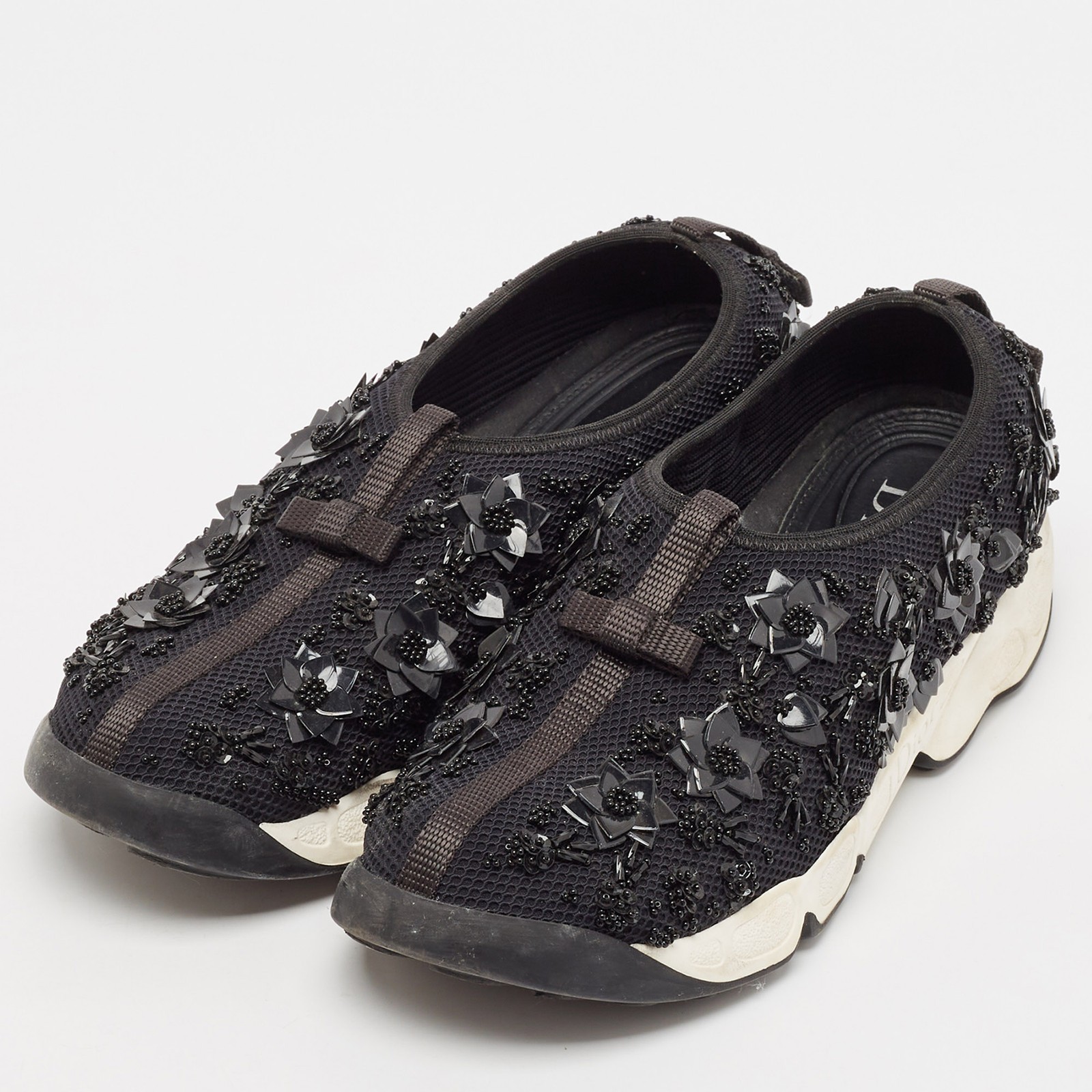 The words edgy and ultra modern can be readily attributed to this pair from Dior. The sneakers were first introduced as a part of their Haute Couture Spring / Summer 2014 collection. Crafted from mesh, they feature embellishments and rubber soles. Trendy detailing, along with the brands lettering on the midsoles, enhances and makes the sneakers worth your buy.Certified by The Luxury Closet - This item has gone through a detailed authentication process overseen by our experts. We offer a lifetime guarantee of authenticity on all our items. Import duties, taxes and charges are not included in the item price. These charges are the buyers responsibility. Please check with your country’s customs office to determine what these additional cost will be prior to buying. Our eBay Store About Us Contact Us Add to Favorite Sellers Dior Black Mesh Embellished Fusion Sneakers Size 39.5 $177.1 The words edgy and ultra modern can be readily attributed to this pair from Dior. The sneakers were first introduced as a part of their Haute Couture Spring / Summer 2014 collection. Crafted from mesh, they feature embellishments and rubber soles. Trendy detailing, along with the brands lettering on the midsoles, enhances and makes the sneakers worth your buy. Product Details Brand Color Black Dimensions Material Mesh Size 39.5 Outsole Width Outsole Length Heel Height Includes Original Dustbag, Original Box, Card, Info Booklet, Extra Embellished Certified by The Luxury Closet This item has gone through a detailed authentication process overseen by our experts. We offer a lifetime guarantee of authenticity on all our items. How We Check The in-house team of experts at The Luxury Closet is highly trained to verify the authenticity and the condition of the luxury products. They ensure that only 100% authentic items are put on sale.The evaluation process is unique with its own mix of assessment criteria and differs according to the category. Each item is evaluated based on the following combination of hallmarks, hardware, stitching, symmetry, material, craftsmanship, stamping, codes, hologram stickers, and packaging. Our authenticators also check if the items have been modified or amended (e.g., aftermarket diamonds, replaced batteries, repaired bags, etc.) International Buyers Import duties, taxes and charges are not included in the item price. These charges are the buyers responsibility. Please check with your country’s customs office to determine what these additional cost will be prior to buying.