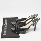 These Dior sandals combine sleek patent leather with a playful bow detail for a feminine, sophisticated look. The open toe design and comfortable slide silhouette make them perfect for effortless chic on warm days. A versatile luxury piece that can be dressed up or down for any occasion.Certified by The Luxury Closet - This item has gone through a detailed authentication process overseen by our experts. We offer a lifetime guarantee of authenticity on all our items. Import duties, taxes and charges are not included in the item price. These charges are the buyers responsibility. Please check with your country’s customs office to determine what these additional cost will be prior to buying. Our eBay Store About Us Contact Us Add to Favorite Sellers Dior Black Patent Leather Bow Slide Sandals Size 40 $223.3 These Dior sandals combine sleek patent leather with a playful bow detail for a feminine, sophisticated look. The open toe design and comfortable slide silhouette make them perfect for effortless chic on warm days. A versatile luxury piece that can be dressed up or down for any occasion. Product Details Brand Color Black Dimensions Material Patent Leather Size 40 Outsole Width 9 cm Outsole Length 25 cm Heel Height 11.5 cm Includes The Luxury Closet Packaging Certified by The Luxury Closet This item has gone through a detailed authentication process overseen by our experts. We offer a lifetime guarantee of authenticity on all our items. How We Check The in-house team of experts at The Luxury Closet is highly trained to verify the authenticity and the condition of the luxury products. They ensure that only 100% authentic items are put on sale.The evaluation process is unique with its own mix of assessment criteria and differs according to the category. Each item is evaluated based on the following combination of hallmarks, hardware, stitching, symmetry, material, craftsmanship, stamping, codes, hologram stickers, and packaging. Our authenticators also check if the items have been modified or amended (e.g., aftermarket diamonds, replaced batteries, repaired bags, etc.) International Buyers Import duties, taxes and charges are not included in the item price. These charges are the buyers responsibility. Please check with your country’s customs office to determine what these additional cost will be prior to buying.