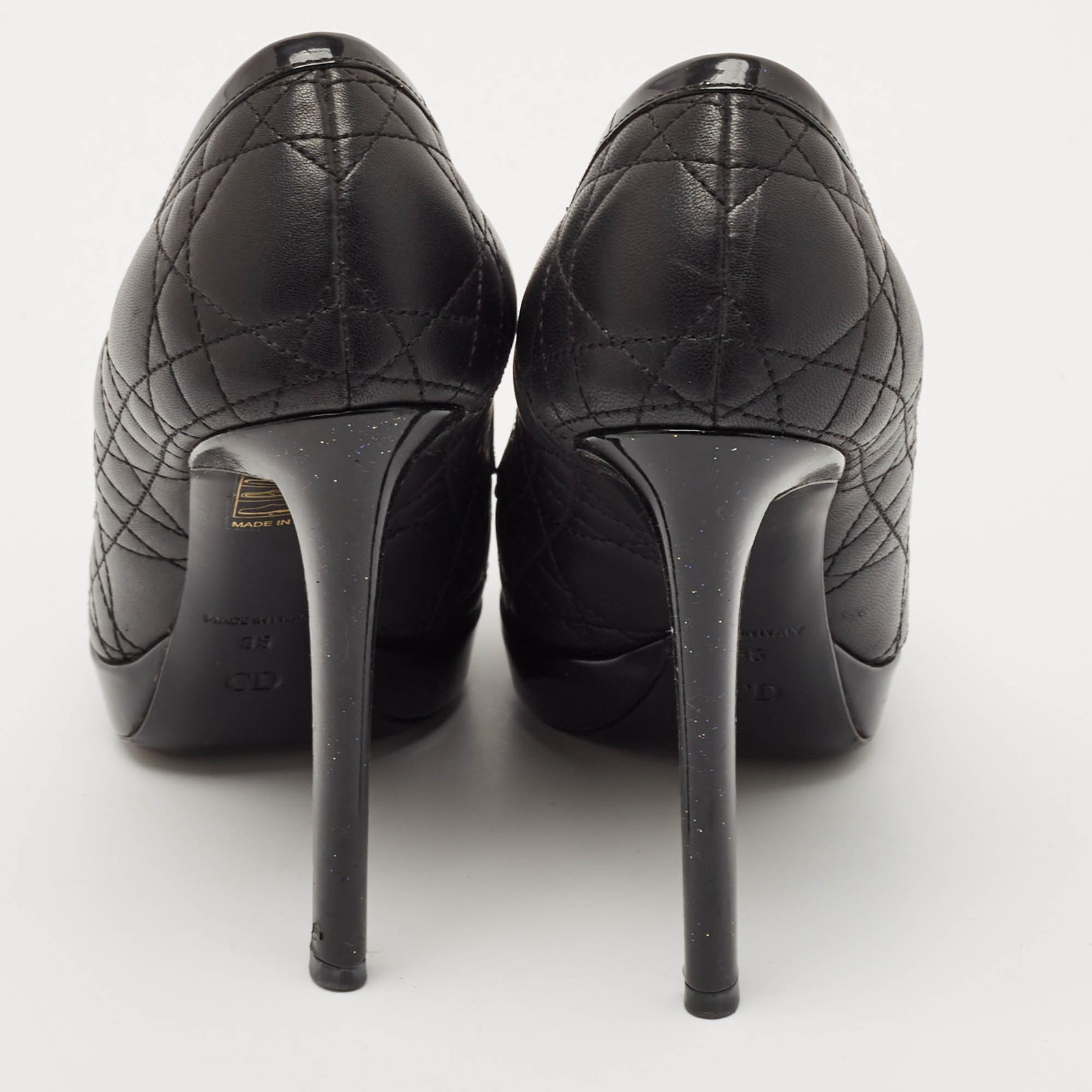Make a chic style statement with these designer pumps. They showcase sturdy heels and durable soles, perfect for your fashionable outingsCertified by The Luxury Closet - This item has gone through a detailed authentication process overseen by our experts. We offer a lifetime guarantee of authenticity on all our items. Import duties, taxes and charges are not included in the item price. These charges are the buyers responsibility. Please check with your country’s customs office to determine what these additional cost will be prior to buying. Our eBay Store About Us Contact Us Add to Favorite Sellers Dior Black Quilted Cannage Leather Platform Pumps Size 35 $248.6 Make a chic style statement with these designer pumps. They showcase sturdy heels and durable soles, perfect for your fashionable outings Product Details Brand Color Black Dimensions Material Leather Size 35 Outsole Width Outsole Length Heel Height Includes Certified by The Luxury Closet This item has gone through a detailed authentication process overseen by our experts. We offer a lifetime guarantee of authenticity on all our items. How We Check The in-house team of experts at The Luxury Closet is highly trained to verify the authenticity and the condition of the luxury products. They ensure that only 100% authentic items are put on sale.The evaluation process is unique with its own mix of assessment criteria and differs according to the category. Each item is evaluated based on the following combination of hallmarks, hardware, stitching, symmetry, material, craftsmanship, stamping, codes, hologram stickers, and packaging. Our authenticators also check if the items have been modified or amended (e.g., aftermarket diamonds, replaced batteries, repaired bags, etc.) International Buyers Import duties, taxes and charges are not included in the item price. These charges are the buyers responsibility. Please check with your country’s customs office to determine what these additional cost will be prior to buying.