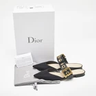 A perfect blend of luxury, style, and comfort, these designer mules are made using quality materials and frame your feet in the most elegant way. They can be paired with a host of outfits from your wardrobe.Certified by The Luxury Closet - This item has gone through a detailed authentication process overseen by our experts. We offer a lifetime guarantee of authenticity on all our items. Import duties, taxes and charges are not included in the item price. These charges are the buyers responsibility. Please check with your country’s customs office to determine what these additional cost will be prior to buying. Our eBay Store About Us Contact Us Add to Favorite Sellers Dior Black Technical Fabric and Leather D-Dior Flat Mules Size 37 $381.7 A perfect blend of luxury, style, and comfort, these designer mules are made using quality materials and frame your feet in the most elegant way. They can be paired with a host of outfits from your wardrobe. Product Details Brand Color Black Dimensions Material Fabric, Leather Size 37 Outsole Width 8 cm Outsole Length 27.5 cm Heel Height Includes Original Dustbag, Original Box, Info Booklet Certified by The Luxury Closet This item has gone through a detailed authentication process overseen by our experts. We offer a lifetime guarantee of authenticity on all our items. How We Check The in-house team of experts at The Luxury Closet is highly trained to verify the authenticity and the condition of the luxury products. They ensure that only 100% authentic items are put on sale.The evaluation process is unique with its own mix of assessment criteria and differs according to the category. Each item is evaluated based on the following combination of hallmarks, hardware, stitching, symmetry, material, craftsmanship, stamping, codes, hologram stickers, and packaging. Our authenticators also check if the items have been modified or amended (e.g., aftermarket diamonds, replaced batteries, repaired bags, etc.) International Buyers Import duties, taxes and charges are not included in the item price. These charges are the buyers responsibility. Please check with your country’s customs office to determine what these additional cost will be prior to buying.