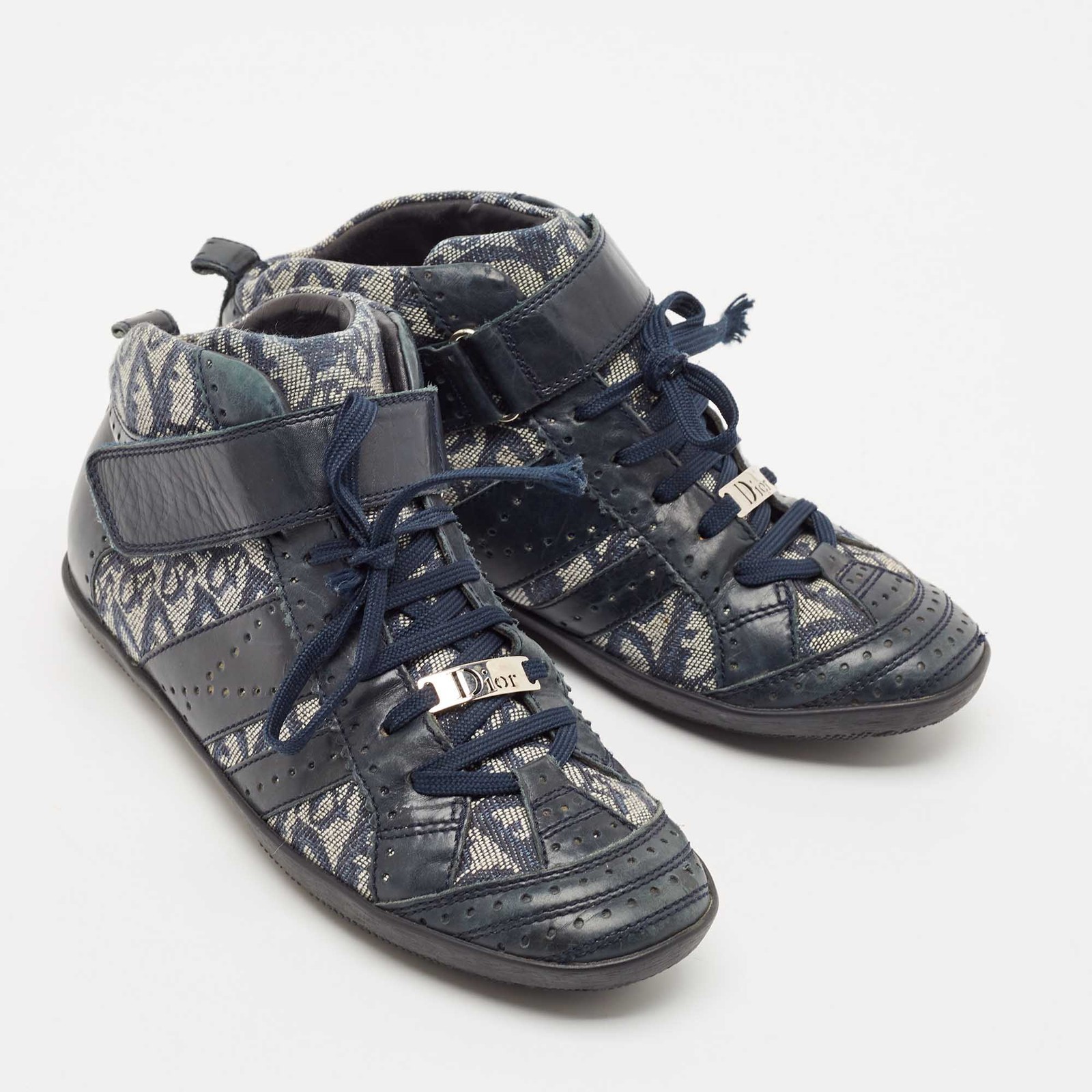 Coming in a classic silhouette, these designer sneakers are a seamless combination of luxury, comfort, and style. These sneakers are finished with signature details and comfortable insoles.Certified by The Luxury Closet - This item has gone through a detailed authentication process overseen by our experts. We offer a lifetime guarantee of authenticity on all our items. Import duties, taxes and charges are not included in the item price. These charges are the buyers responsibility. Please check with your country’s customs office to determine what these additional cost will be prior to buying. Our eBay Store About Us Contact Us Add to Favorite Sellers Dior Blue/Grey Oblique Canvas and Leather High Top Sneakers Size 37.5 $280.5 Coming in a classic silhouette, these designer sneakers are a seamless combination of luxury, comfort, and style. These sneakers are finished with signature details and comfortable insoles. Product Details Brand Color Blue Dimensions Material Canvas, Leather Size 37.5 Outsole Width 8 cm Outsole Length 26 cm Heel Height Includes The Luxury Closet Packaging Certified by The Luxury Closet This item has gone through a detailed authentication process overseen by our experts. We offer a lifetime guarantee of authenticity on all our items. How We Check The in-house team of experts at The Luxury Closet is highly trained to verify the authenticity and the condition of the luxury products. They ensure that only 100% authentic items are put on sale.The evaluation process is unique with its own mix of assessment criteria and differs according to the category. Each item is evaluated based on the following combination of hallmarks, hardware, stitching, symmetry, material, craftsmanship, stamping, codes, hologram stickers, and packaging. Our authenticators also check if the items have been modified or amended (e.g., aftermarket diamonds, replaced batteries, repaired bags, etc.) International Buyers Import duties, taxes and charges are not included in the item price. These charges are the buyers responsibility. Please check with your country’s customs office to determine what these additional cost will be prior to buying.