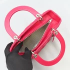 Size: 24 cm width/ 19 cm/ width 12 cm/ handle height 11 cm/ strap height ~45 cm Color: pink accessories: Lotte Department Store Guarantee Card/ Dust/ Booklet Dior (Christian Dior) CAL44551 Pink Color Lambskin Lady Dior M size tote bag + shoulder strap 2WAY [Donglotte Store] The material is leather. There is a zipper pocket on the inside.