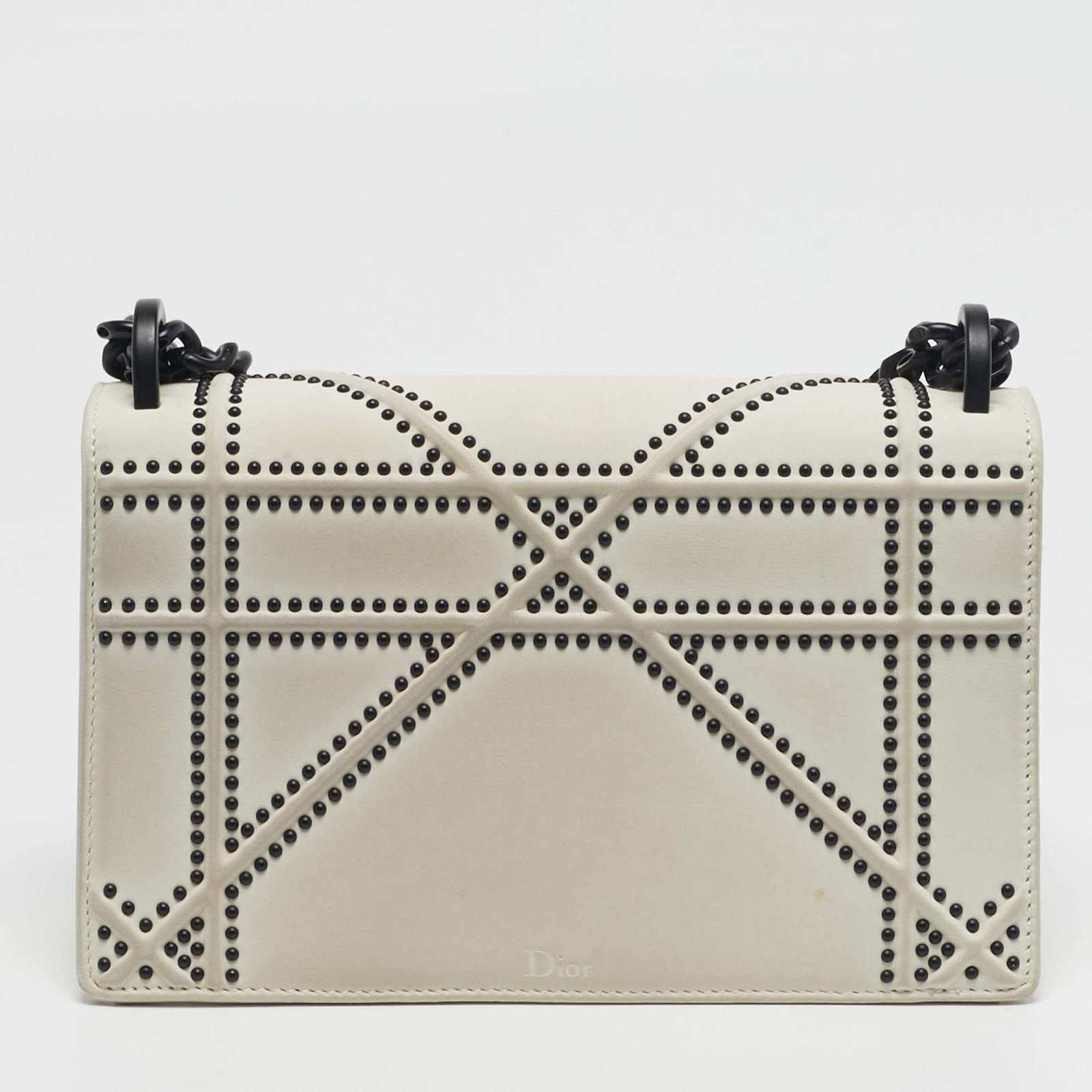 Our eBay Store About Us Contact Us Add to Favorite Sellers Dior Diorama Small Off White Cannage Studded Leather Flap Bag Crafted in off white leather, this Dior Diorama small bag features the house’s Cannage pattern enhanced with stud detailing. The structured flap silhouette delivers a compact yet defined shape suited for both daytime and evening wear. Its sculptural form and detailed surface bring dimension while maintaining a polished, architectural presence. Product Details Brand Dior Includes Authenticity Card, Original Box, Info Booklet, Brand Dustbag Certified by The Luxury Closet This item has gone through a detailed authentication process overseen by our experts. We offer a lifetime guarantee of authenticity on all our items. How We Check The in-house team of experts at The Luxury Closet is highly trained to verify the authenticity and the condition of the luxury products. They ensure that only 100% authentic items are put on sale.The evaluation process is unique with its own mix of assessment criteria and differs according to the category. Each item is evaluated based on the following combination of hallmarks, hardware, stitching, symmetry, material, craftsmanship, stamping, codes, hologram stickers, and packaging. Our authenticators also check if the items have been modified or amended (e.g., aftermarket diamonds, replaced batteries, repaired bags, etc.) International Buyers Import duties, taxes and charges are not included in the item price. These charges are the buyers responsibility. Please check with your country’s customs office to determine what these additional cost will be prior to buying.