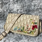 Christian Dior shoulder bag features flower embroidery with a trotter pattern and all-over logo design. The bag is embroidered with off-white florals and can be worn over the shoulder or crossbody. The product condition is rated A, indicating slight scratches or dirt but minimal signs of use. The bags height is approximately 5.51 inches, the width is approximately 9.45 inches, and the depth is approximately 1.97 inches. I promise fast shipping via FedEx or DHL as soon as possible! Import duties, taxes and charges are not included in the item price or shipping charges. These charges are the buyer’s responsibility. These charges are normally collected by the delivering freight (shipping) company or when you pick the item up - do not confuse them for additional shipping charges.