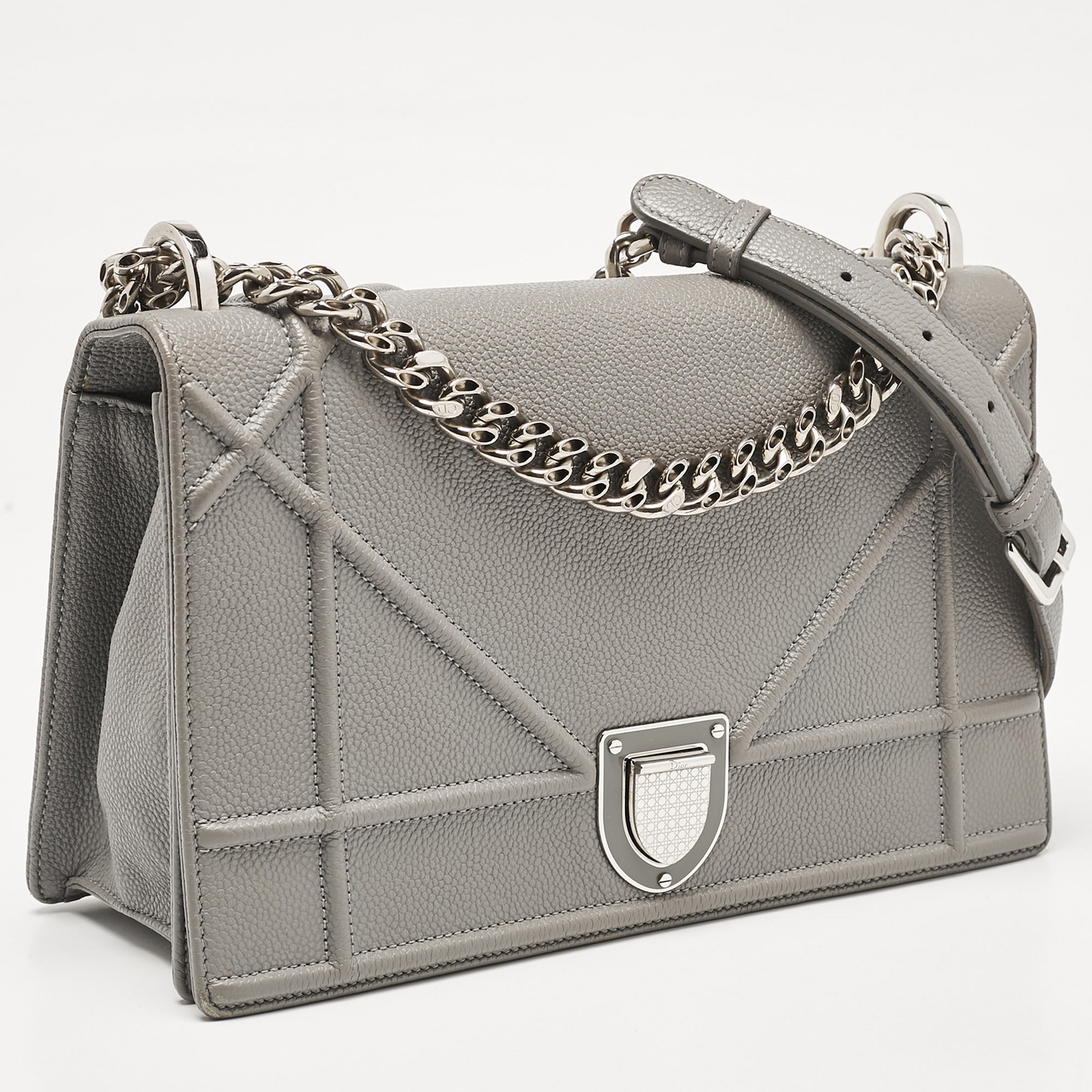 Indulge in understated elegance with this grey leather handbag from Dior. Crafted with precision in Italy, this chic shoulder piece showcases the brands attention to detail. Its sleek flap opens to a fabric interior, offering sophistication and practicality. The adjustable shoulder strap ensures a perfect fit for any occasion. Perfect for the discerning woman, this timeless accessory embodies both luxury and functionality, making it a must have for those who appreciate iconic style.Certified by The Luxury Closet - This item has gone through a detailed authentication process overseen by our experts. We offer a lifetime guarantee of authenticity on all our items. Import duties, taxes and charges are not included in the item price. These charges are the buyers responsibility. Please check with your country’s customs office to determine what these additional cost will be prior to buying. Our eBay Store About Us Contact Us Add to Favorite Sellers Dior Grey Leather Medium Diorama Flap Shoulder Bag $808.5 Indulge in understated elegance with this grey leather handbag from Dior. Crafted with precision in Italy, this chic shoulder piece showcases the brands attention to detail. Its sleek flap opens to a fabric interior, offering sophistication and practicality. The adjustable shoulder strap ensures a perfect fit for any occasion. Perfect for the discerning woman, this timeless accessory embodies both luxury and functionality, making it a must have for those who appreciate iconic style. Product Details Brand Color Grey Dimensions Height: 15 cm, Width: 8.5 cm, Length: 25 cm Material Leather Size Medium Outsole Width Outsole Length Heel Height Includes Original Dustbag, Authenticity Card, Info Booklet Certified by The Luxury Closet This item has gone through a detailed authentication process overseen by our experts. We offer a lifetime guarantee of authenticity on all our items. How We Check The in-house team of experts at The Luxury Closet is highly trained to verify the authenticity and the condition of the luxury products. They ensure that only 100% authentic items are put on sale.The evaluation process is unique with its own mix of assessment criteria and differs according to the category. Each item is evaluated based on the following combination of hallmarks, hardware, stitching, symmetry, material, craftsmanship, stamping, codes, hologram stickers, and packaging. Our authenticators also check if the items have been modified or amended (e.g., aftermarket diamonds, replaced batteries, repaired bags, etc.) International Buyers Import duties, taxes and charges are not included in the item price. These charges are the buyers responsibility. Please check with your country’s customs office to determine what these additional cost will be prior to buying.