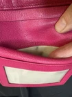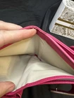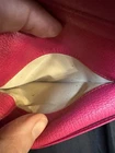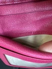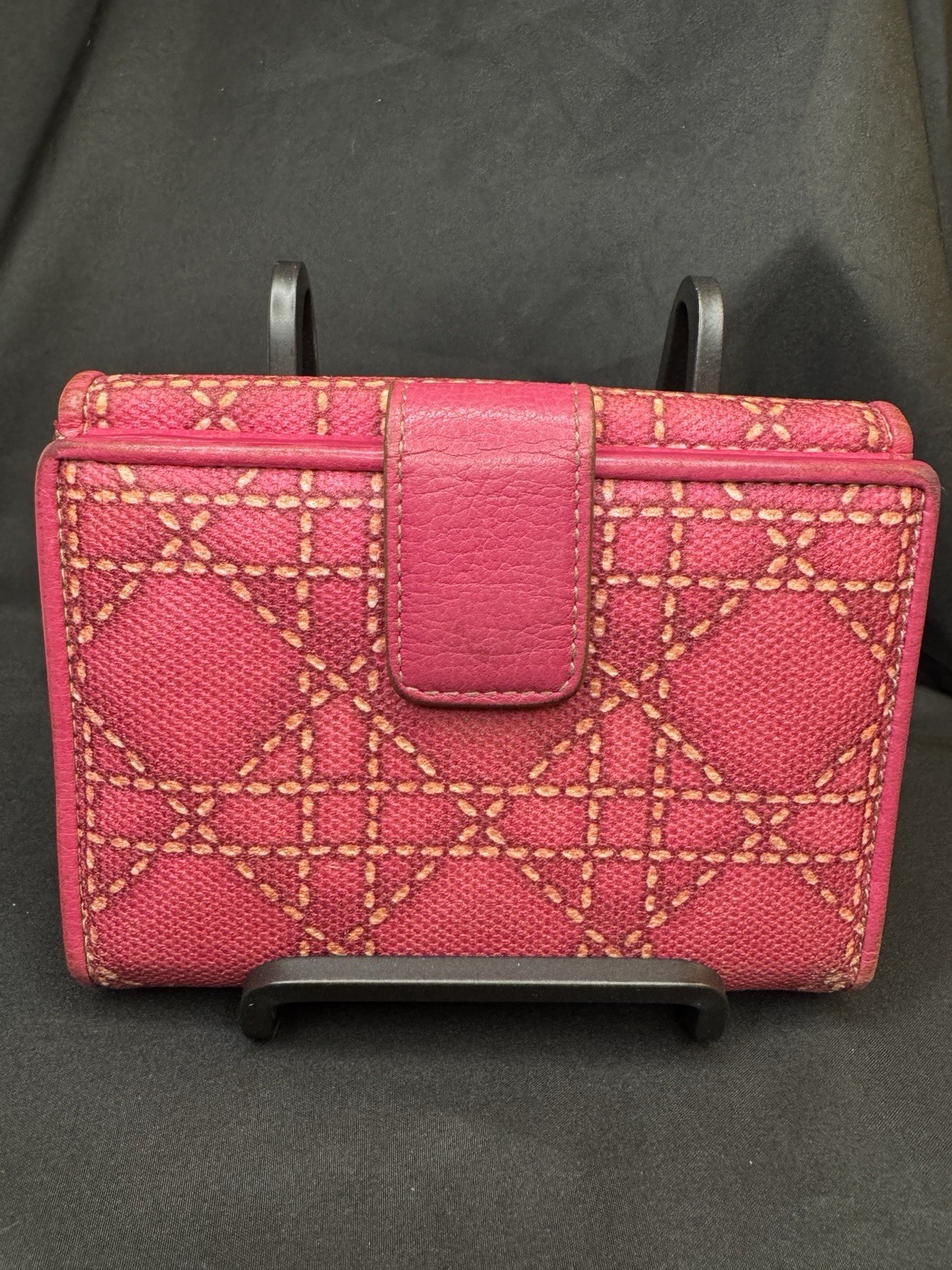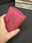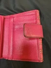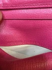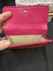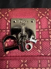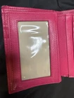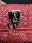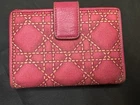 Preloved Authentic Dior Lady Dior Charm Wallet in Pink with Cannage stitching and silver-tone "D.I.O.R." charms. Beautiful Pink and Rare Serial # Pictured Approximate Size: 5" x 3.5" Very good Preloved condition and Clean - one rub call out everything else is beautiful (Call out is pictured) See pictures for measurements and a detailed description. Chic pink wallet featuring silver accents and Dior charm. Come with wallet only Sold As Is
