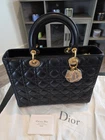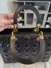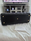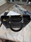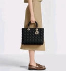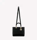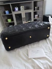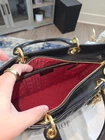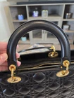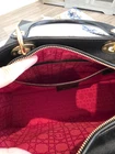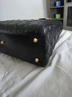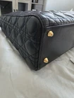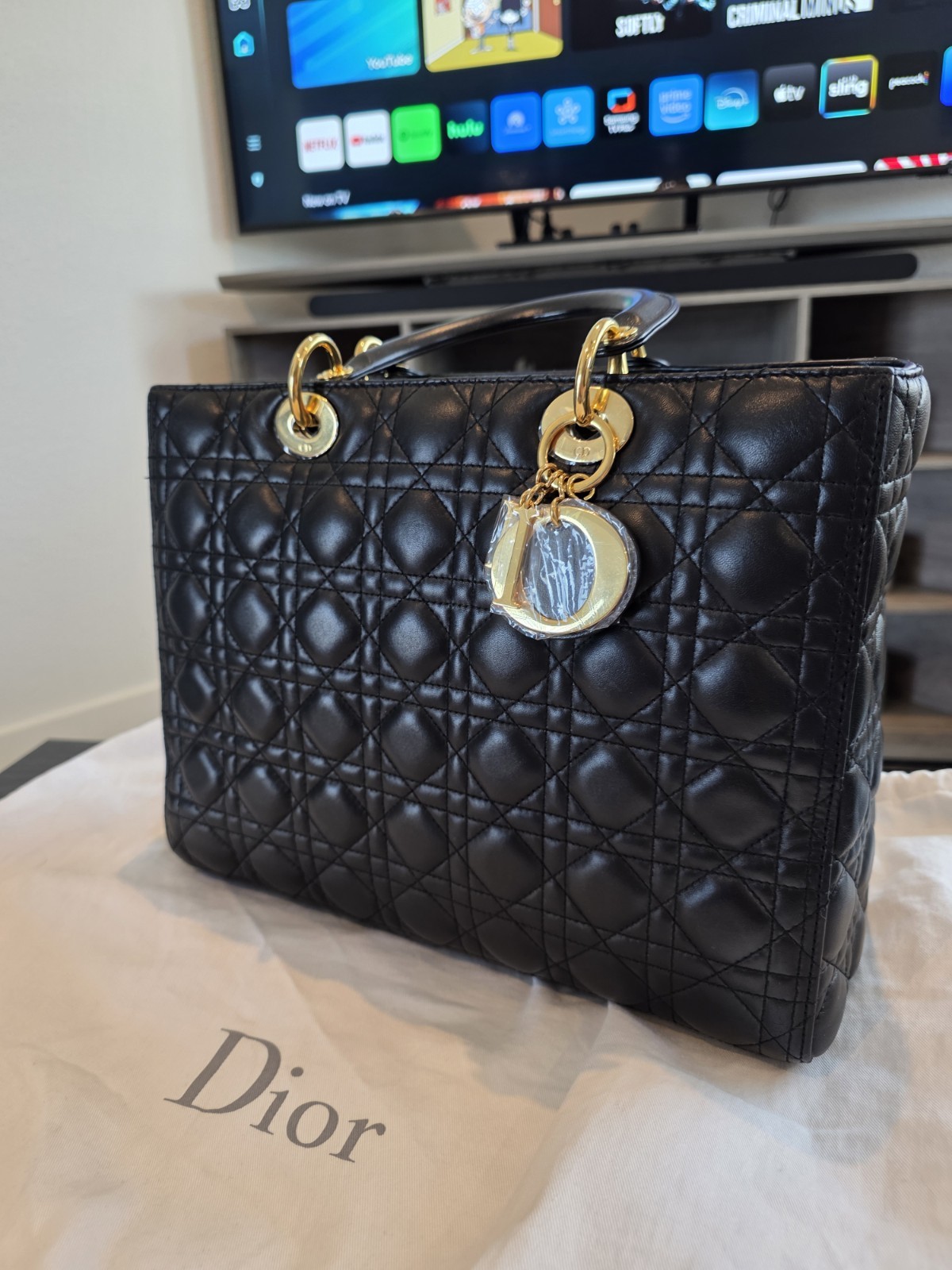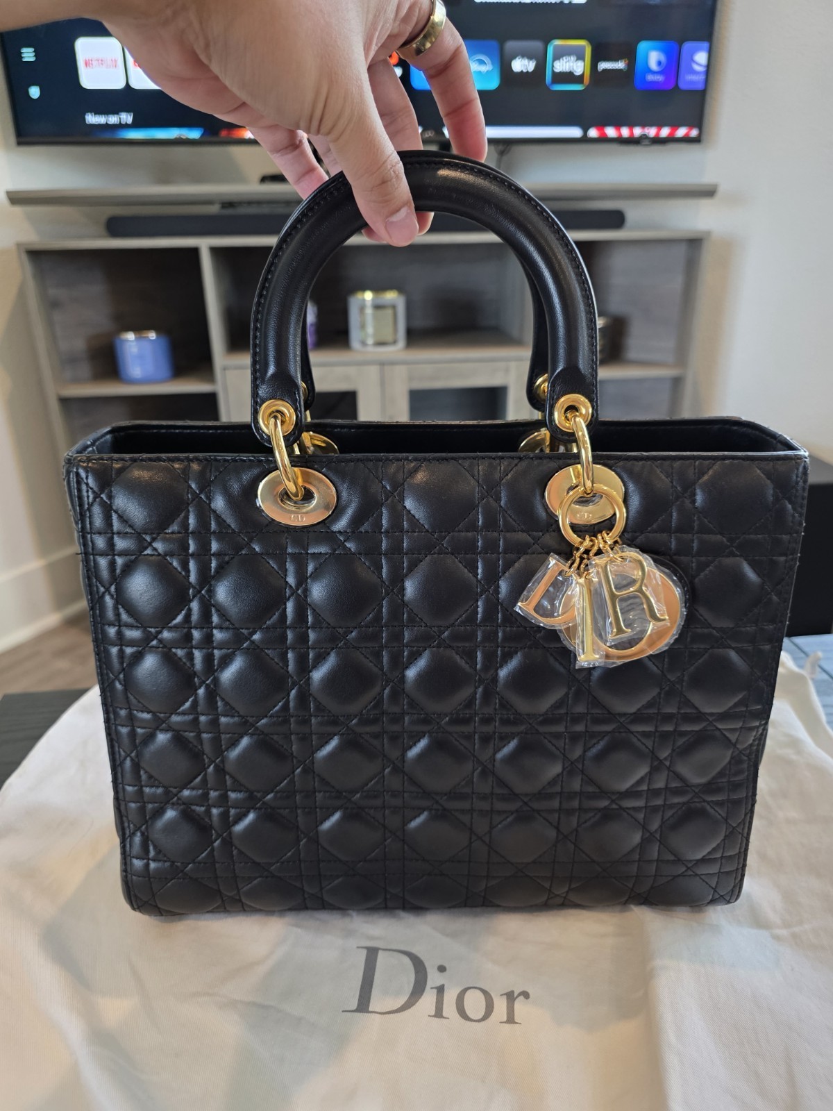 The Christian Dior LADY DIOR Large Lamb Skin 2way Leather Handbag is a luxurious and stylish accessory for women. Made of high-quality lambskin with Dior Cannage pattern, this square-shaped handbag features a zip closure and gold hardware accents. The black leather handles have a 4.5-inch drop and can be worn as a shoulder bag with a 14-inch strap drop. The interior is lined with red fabric, adding a touch of elegance to the overall design. Additionally, this handbag comes with a maintenance card and original dust bag, making it a must-have for fashion-forward individuals looking for a chic and practical accessory. PURCHASED it in Japan last year at a Pre-love store but never used it at all. It DID NOT come with a strap at the point of purchase when I bought it. However, you can easily buy a third party strap (which I think is better because the strap that comes with the version of this bag is really small/thin in my opinion). I LOVE LOVE LOVE this version of the bag because it STILL has the zipper, instead of the flap with the current/new Lady Dior Large Quilted bag. This beauty has been sitting pretty in my closet. I only took it out a few times to moisturize it (since it's real lambskin) to keep and maintain the shine and the fluffiness of all of the quilts on the bag. The bag is in GREAT condition.