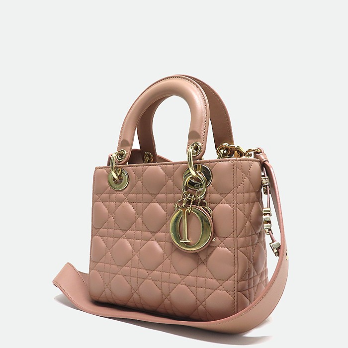 Size: 20 cm width/ 7 cm/ width 8 cm/ handle height 7 cm/ strap height 54 cm Color: pink Accessories: Shinsegae Department Store Guarantee Card/ Booklet Dior (Christian Dior) M0538OCAL M50P Pink Beige Lambskin Lady Dior ABC DIOR tote bag + shoulder strap [Busan Centum Main Store]. The material is sheepskin. - Purchase notes - This is a product with fine scratches on the gold decoration. This product has a 'C'; 'D'; '★' metal badge on the strap. This Lady Dior bag perfectly expresses Dior's vision of elegance and beauty. A classic yet modern bag with a refined and luxurious feel; the quilted texture of gray sheepskin with cannage stitching is eye-catching. A pale gold-finished metal D.I.O.R. block charm with a smoky crystal adorns the silhouette. This Lady Dior bag includes a detachable chain shoulder strap and is a great evening accessory. • Removable chain strap • Interior zip pocket • Can be worn as a shoulder bag or crossbody bag • Add your own style with an additional strap • Size: 20 x 17 x 8 cm • Badge: P; H; J