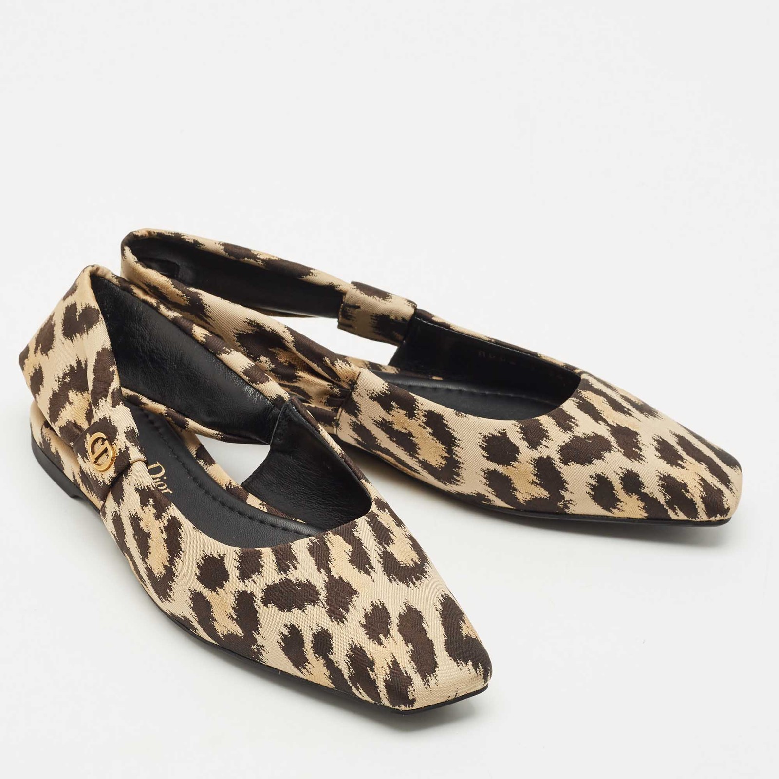 The Dior Mizza flats exude wild charm with their leopard print fabric in neutral tones. A pointed toe and sleek silhouette lend them a chic, feline edge that’s versatile and modern.Certified by The Luxury Closet - This item has gone through a detailed authentication process overseen by our experts. We offer a lifetime guarantee of authenticity on all our items. Import duties, taxes and charges are not included in the item price. These charges are the buyers responsibility. Please check with your country’s customs office to determine what these additional cost will be prior to buying. Our eBay Store About Us Contact Us Add to Favorite Sellers Dior Beige/Black Leopard Print Fabric Mizza Flats Size 34.5 $639.1 The Dior Mizza flats exude wild charm with their leopard print fabric in neutral tones. A pointed toe and sleek silhouette lend them a chic, feline edge that’s versatile and modern. Product Details Brand Color Beige Dimensions Material Fabric Size 34.5 Outsole Width Outsole Length Heel Height Includes Certified by The Luxury Closet This item has gone through a detailed authentication process overseen by our experts. We offer a lifetime guarantee of authenticity on all our items. How We Check The in-house team of experts at The Luxury Closet is highly trained to verify the authenticity and the condition of the luxury products. They ensure that only 100% authentic items are put on sale.The evaluation process is unique with its own mix of assessment criteria and differs according to the category. Each item is evaluated based on the following combination of hallmarks, hardware, stitching, symmetry, material, craftsmanship, stamping, codes, hologram stickers, and packaging. Our authenticators also check if the items have been modified or amended (e.g., aftermarket diamonds, replaced batteries, repaired bags, etc.) International Buyers Import duties, taxes and charges are not included in the item price. These charges are the buyers responsibility. Please check with your country’s customs office to determine what these additional cost will be prior to buying.