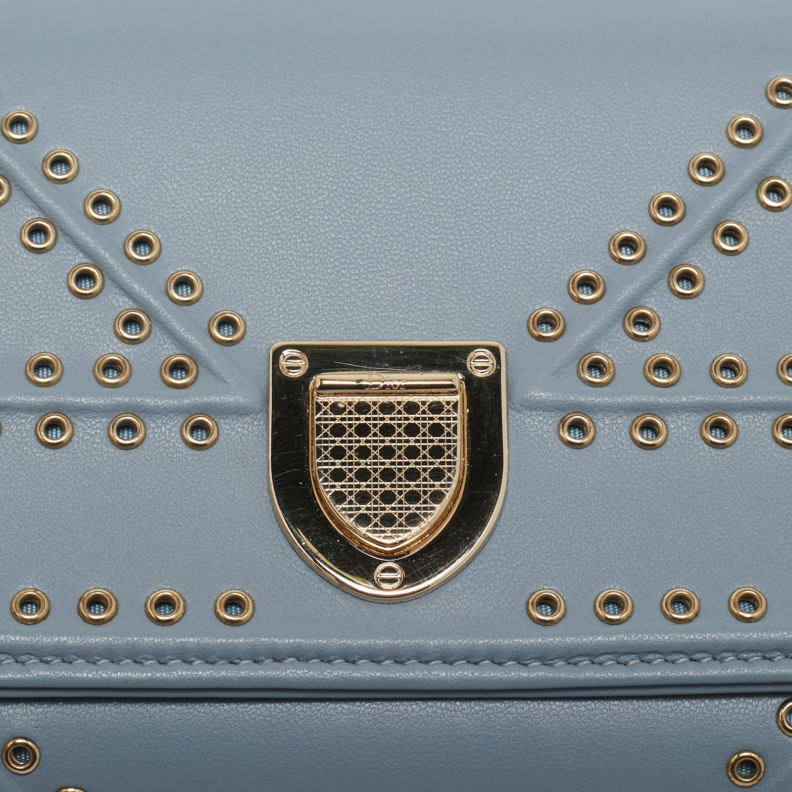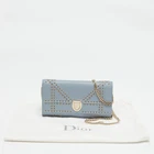 A compact powerhouse, this Diorama WOC in light blue leather is adorned with metal studs for an edgy twist. The chain strap allows for hands free carrying, making it perfect for nights out.Certified by The Luxury Closet - This item has gone through a detailed authentication process overseen by our experts. We offer a lifetime guarantee of authenticity on all our items. Import duties, taxes and charges are not included in the item price. These charges are the buyers responsibility. Please check with your country’s customs office to determine what these additional cost will be prior to buying. Our eBay Store About Us Contact Us Add to Favorite Sellers Dior Light Blue Leather Studded Diorama Wallet on Chain $1839.2 A compact powerhouse, this Diorama WOC in light blue leather is adorned with metal studs for an edgy twist. The chain strap allows for hands free carrying, making it perfect for nights out. Product Details Brand Color Blue Dimensions Height: 11 cm, Width: 3 cm, Length: 21 cm Material Leather Size Outsole Width Outsole Length Heel Height Includes Detachable Strap, Brand Dustbag Certified by The Luxury Closet This item has gone through a detailed authentication process overseen by our experts. We offer a lifetime guarantee of authenticity on all our items. How We Check The in-house team of experts at The Luxury Closet is highly trained to verify the authenticity and the condition of the luxury products. They ensure that only 100% authentic items are put on sale.The evaluation process is unique with its own mix of assessment criteria and differs according to the category. Each item is evaluated based on the following combination of hallmarks, hardware, stitching, symmetry, material, craftsmanship, stamping, codes, hologram stickers, and packaging. Our authenticators also check if the items have been modified or amended (e.g., aftermarket diamonds, replaced batteries, repaired bags, etc.) International Buyers Import duties, taxes and charges are not included in the item price. These charges are the buyers responsibility. Please check with your country’s customs office to determine what these additional cost will be prior to buying.