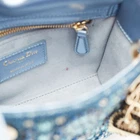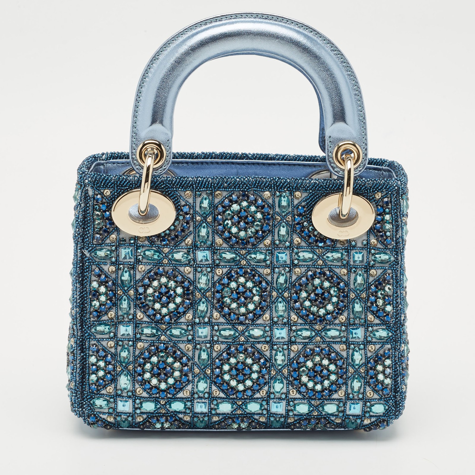 Dior’s Mini Lady Dior dazzles in metallic blue leather and satin, finished with embellishments that catch the light. Iconic quilting and tonal charms add dimension to this standout evening piece.Certified by The Luxury Closet - This item has gone through a detailed authentication process overseen by our experts. We offer a lifetime guarantee of authenticity on all our items. Import duties, taxes and charges are not included in the item price. These charges are the buyers responsibility. Please check with your country’s customs office to determine what these additional cost will be prior to buying. Our eBay Store About Us Contact Us Add to Favorite Sellers Dior Metallic Blue Leather and Satin Embellished Mini Lady Dior Tote $8429.3 Dior’s Mini Lady Dior dazzles in metallic blue leather and satin, finished with embellishments that catch the light. Iconic quilting and tonal charms add dimension to this standout evening piece. Product Details Brand Color Blue Dimensions Material Leather, Satin Size Outsole Width Outsole Length Heel Height Includes Certified by The Luxury Closet This item has gone through a detailed authentication process overseen by our experts. We offer a lifetime guarantee of authenticity on all our items. How We Check The in-house team of experts at The Luxury Closet is highly trained to verify the authenticity and the condition of the luxury products. They ensure that only 100% authentic items are put on sale.The evaluation process is unique with its own mix of assessment criteria and differs according to the category. Each item is evaluated based on the following combination of hallmarks, hardware, stitching, symmetry, material, craftsmanship, stamping, codes, hologram stickers, and packaging. Our authenticators also check if the items have been modified or amended (e.g., aftermarket diamonds, replaced batteries, repaired bags, etc.) International Buyers Import duties, taxes and charges are not included in the item price. These charges are the buyers responsibility. Please check with your country’s customs office to determine what these additional cost will be prior to buying.