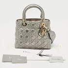 Our eBay Store About Us Contact Us Add to Favorite Sellers Dior Metallic Grey Cannage Leather Medium Lady Dior Tote Due to detailed and innovative designs, Dior has managed to be at the top of fashion's hierarchy through the years. Infuse the signature aesthetics of the brand into your outfit by accessorizing it with this Lady Dior tote. With a soft structure, it is crafted from quilted leather with a striking Cannagae pattern and the brand's letter charms mark its quality craftsmanship. The double handles at the top, a shoulder strap and its perfectly sized interior make it a functional companion for your next soiree. Product Details Brand Dior Includes Original Dustbag, Authenticity Card, Info Booklet, Detachable Str Certified by The Luxury Closet This item has gone through a detailed authentication process overseen by our experts. We offer a lifetime guarantee of authenticity on all our items. How We Check The in-house team of experts at The Luxury Closet is highly trained to verify the authenticity and the condition of the luxury products. They ensure that only 100% authentic items are put on sale.The evaluation process is unique with its own mix of assessment criteria and differs according to the category. Each item is evaluated based on the following combination of hallmarks, hardware, stitching, symmetry, material, craftsmanship, stamping, codes, hologram stickers, and packaging. Our authenticators also check if the items have been modified or amended (e.g., aftermarket diamonds, replaced batteries, repaired bags, etc.) Please note that this handbag may have a perfume scent, as it was stored and packaged in Dubai where such fragrances are commonly used. International Buyers Import duties, taxes and charges are not included in the item price. These charges are the buyers responsibility. Please check with your country’s customs office to determine what these additional cost will be prior to buying.