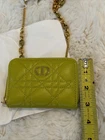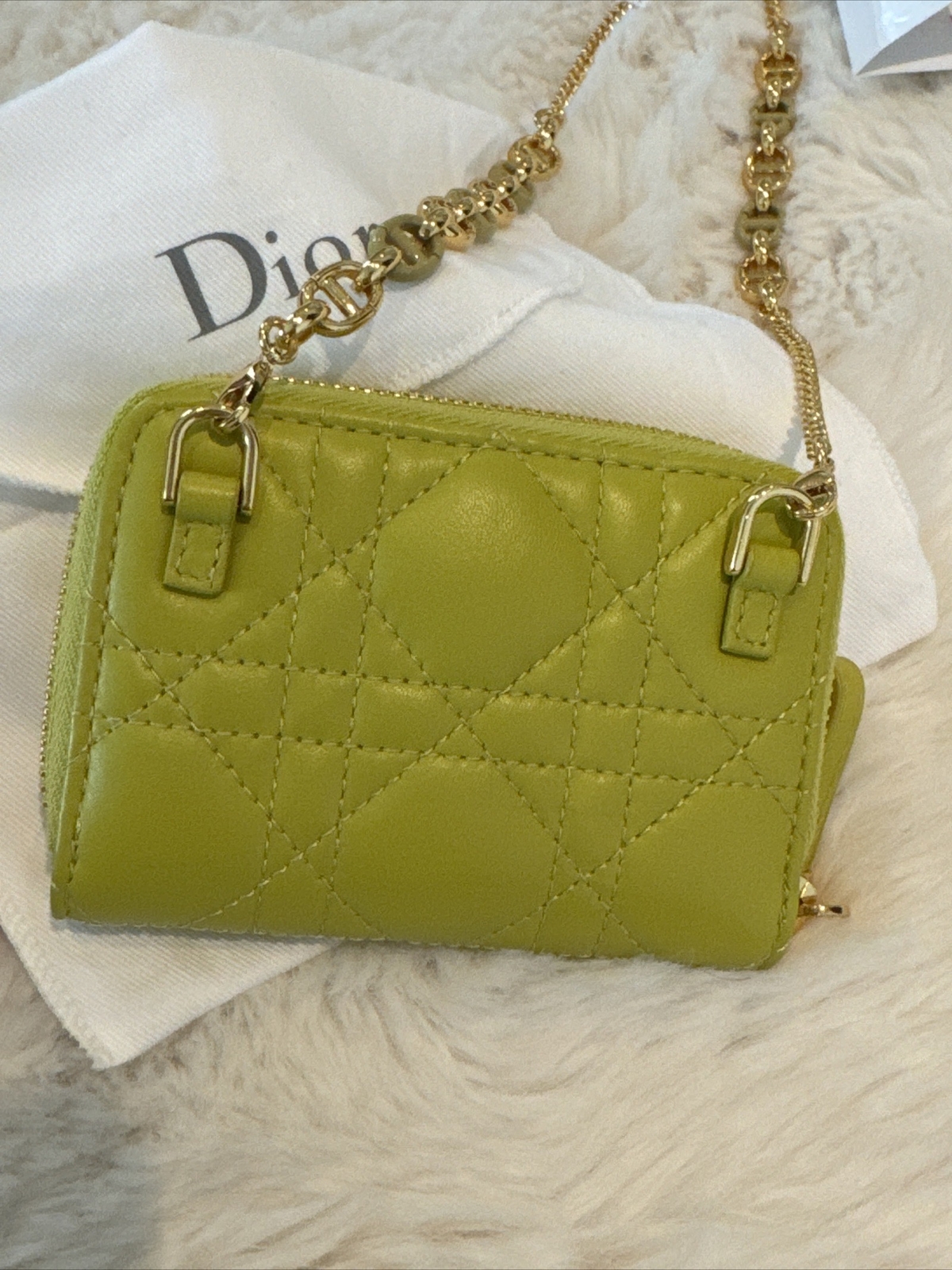 100% AUTHENTIC New With Tag Dior Mini Caro Cannage Pouch With removable Gold Chain Lambskin Bag * it has some very small indentations on the interior probably from the chain that was stored in the pocket. please look at the final few pictures that shows the indentations. It is not damaged, it just left marks from the chain. again, this is just the interior. This bag was never used, it's brand new, unfortunately, I just noticed this recently and can not return the item to the store. I have lower the price because of the interior indentations. Brand New with tag Mini Caro Pouch Bag Comes with DIOR dust bag gold & lime chain Color: lime DIOR PARIS Brand new with tag, never used, no damage. WITH REMOVABLE Chain Zipped wallet/pouch/mini bag Can wear on shoulder, cross body or on waist.