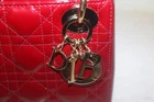 Christian Dior Patent Leather Cannage Mini Lady Dior Bag Red Designer: Christian Dior Material: Dark red cannage quilted patent leather Origin: Italy Date/Authenticity Code: D-0252 Measurements: 6.6" L x 3" W x 5.85" H Interior Pockets: One zip pocket Handles: Double flat rigid leather handles and single detachable chain link shoulder strap with leather pad Handle Drop: 2.5" and 22.5" Closure/Opening: Open top with leather flap Interior Lining: Fine textile lining Hardware: Goldtone