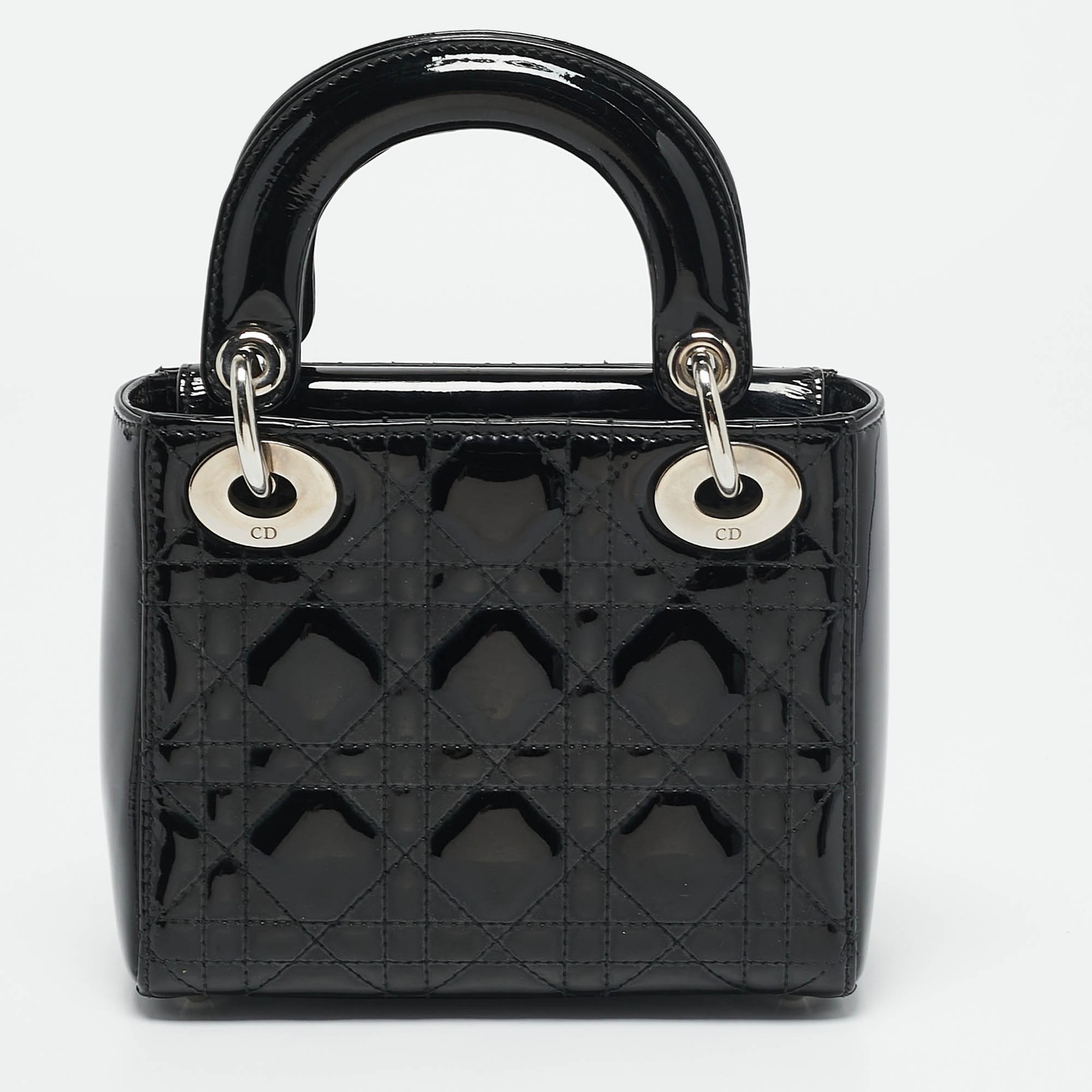 Due to detailed and innovative designs, Dior has managed to be at the top of fashions hierarchy through the years. Infuse the signature aesthetics of the brand into your outfit by accessorizing it with this Lady Dior tote. With a classic design, it is crafted from patent leather with a striking Cannage pattern, and the brands letter charms mark its quality craftsmanship. The double handles at the top, a shoulder strap, and its perfectly sized interior make it a functional companion for your next soiree.Certified by The Luxury Closet - This item has gone through a detailed authentication process overseen by our experts. We offer a lifetime guarantee of authenticity on all our items. Import duties, taxes and charges are not included in the item price. These charges are the buyers responsibility. Please check with your country’s customs office to determine what these additional cost will be prior to buying. Our eBay Store About Us Contact Us Add to Favorite Sellers Dior Black Cannage Patent Leather Mini Lady Dior Tote $3657.5 Due to detailed and innovative designs, Dior has managed to be at the top of fashions hierarchy through the years. Infuse the signature aesthetics of the brand into your outfit by accessorizing it with this Lady Dior tote. With a classic design, it is crafted from patent leather with a striking Cannage pattern, and the brands letter charms mark its quality craftsmanship. The double handles at the top, a shoulder strap, and its perfectly sized interior make it a functional companion for your next soiree. Product Details Brand Color Black Dimensions Material Patent Leather Size Outsole Width Outsole Length Heel Height Includes Certified by The Luxury Closet This item has gone through a detailed authentication process overseen by our experts. We offer a lifetime guarantee of authenticity on all our items. How We Check The in-house team of experts at The Luxury Closet is highly trained to verify the authenticity and the condition of the luxury products. They ensure that only 100% authentic items are put on sale.The evaluation process is unique with its own mix of assessment criteria and differs according to the category. Each item is evaluated based on the following combination of hallmarks, hardware, stitching, symmetry, material, craftsmanship, stamping, codes, hologram stickers, and packaging. Our authenticators also check if the items have been modified or amended (e.g., aftermarket diamonds, replaced batteries, repaired bags, etc.) International Buyers Import duties, taxes and charges are not included in the item price. These charges are the buyers responsibility. Please check with your country’s customs office to determine what these additional cost will be prior to buying.