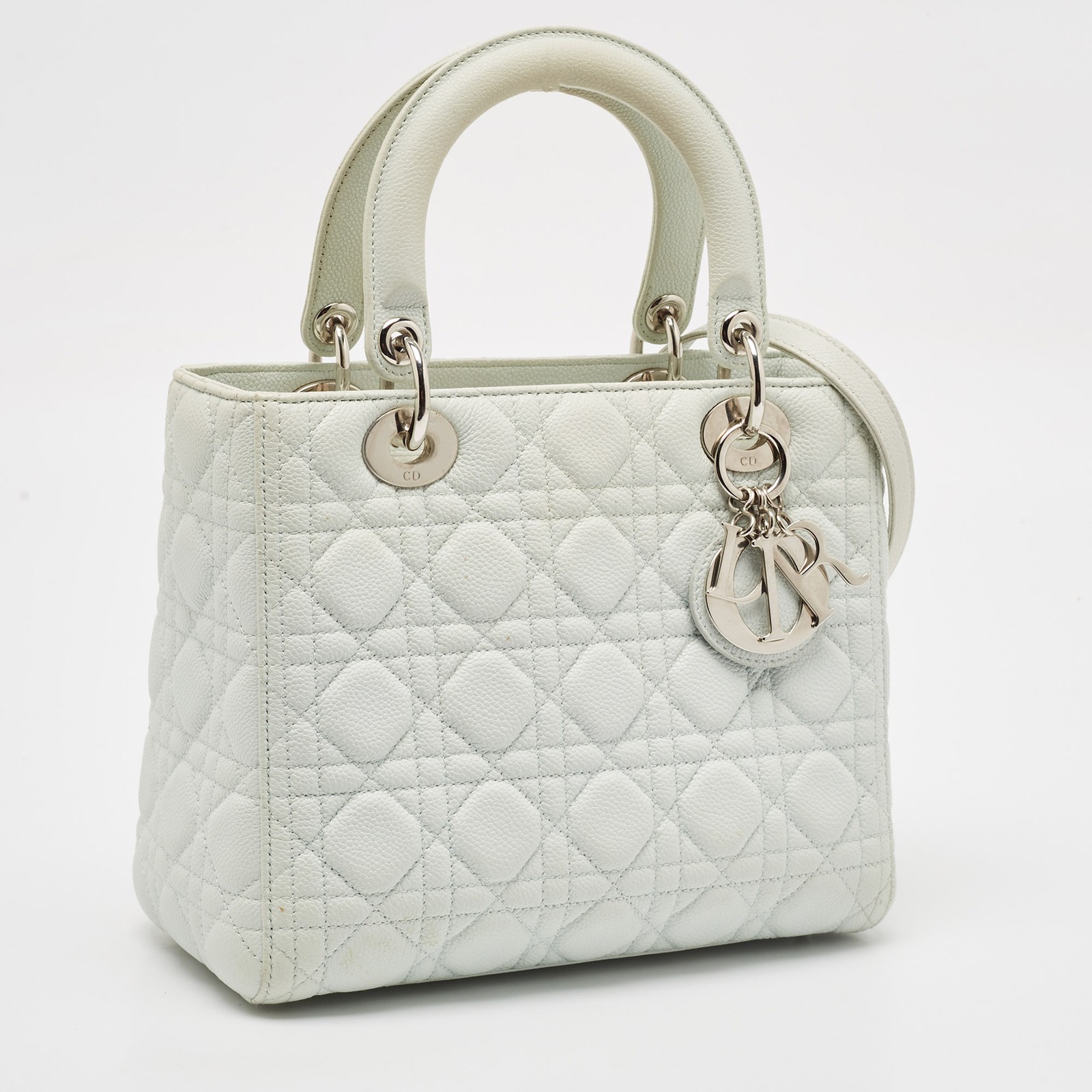Due to detailed and innovative designs, Dior has managed to be at the top of fashions hierarchy through the years. Infuse the signature aesthetics of the brand into your outfit by accessorizing it with this Lady Dior tote. With a classic design, it is crafted from leather with a striking Cannagae pattern, and the brands letter charms mark its quality craftsmanship. The double handles at the top, a shoulder strap, and its perfectly sized interior make it a functional companion for your next soiree.Certified by The Luxury Closet - This item has gone through a detailed authentication process overseen by our experts. We offer a lifetime guarantee of authenticity on all our items. Import duties, taxes and charges are not included in the item price. These charges are the buyers responsibility. Please check with your country’s customs office to determine what these additional cost will be prior to buying. Our eBay Store About Us Contact Us Add to Favorite Sellers Dior Mint Green Cannage Leather Medium Lady Dior Tote $2720.3 Due to detailed and innovative designs, Dior has managed to be at the top of fashions hierarchy through the years. Infuse the signature aesthetics of the brand into your outfit by accessorizing it with this Lady Dior tote. With a classic design, it is crafted from leather with a striking Cannagae pattern, and the brands letter charms mark its quality craftsmanship. The double handles at the top, a shoulder strap, and its perfectly sized interior make it a functional companion for your next soiree. Product Details Brand Color Green Dimensions Height: 20 cm, Width: 12 cm, Length: 24 cm Material Leather Size Medium Outsole Width Outsole Length Heel Height Includes Original Dustbag, Detachable Strap Certified by The Luxury Closet This item has gone through a detailed authentication process overseen by our experts. We offer a lifetime guarantee of authenticity on all our items. How We Check The in-house team of experts at The Luxury Closet is highly trained to verify the authenticity and the condition of the luxury products. They ensure that only 100% authentic items are put on sale.The evaluation process is unique with its own mix of assessment criteria and differs according to the category. Each item is evaluated based on the following combination of hallmarks, hardware, stitching, symmetry, material, craftsmanship, stamping, codes, hologram stickers, and packaging. Our authenticators also check if the items have been modified or amended (e.g., aftermarket diamonds, replaced batteries, repaired bags, etc.) International Buyers Import duties, taxes and charges are not included in the item price. These charges are the buyers responsibility. Please check with your country’s customs office to determine what these additional cost will be prior to buying.