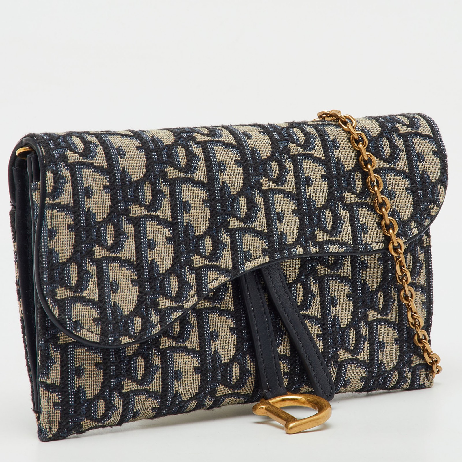 Featuring Dior’s iconic navy Oblique canvas, this wallet on chain blends functionality with signature Parisian flair. It transitions effortlessly from daytime to evening.Certified by The Luxury Closet - This item has gone through a detailed authentication process overseen by our experts. We offer a lifetime guarantee of authenticity on all our items. Import duties, taxes and charges are not included in the item price. These charges are the buyers responsibility. Please check with your country’s customs office to determine what these additional cost will be prior to buying. Our eBay Store About Us Contact Us Add to Favorite Sellers Dior Navy Blue Oblique Canvas and Leather Saddle Wallet On Chain $1724.8 Featuring Dior’s iconic navy Oblique canvas, this wallet on chain blends functionality with signature Parisian flair. It transitions effortlessly from daytime to evening. Product Details Brand Color Navy Blue Dimensions Material Canvas, Leather Size Outsole Width Outsole Length Heel Height Includes Certified by The Luxury Closet This item has gone through a detailed authentication process overseen by our experts. We offer a lifetime guarantee of authenticity on all our items. How We Check The in-house team of experts at The Luxury Closet is highly trained to verify the authenticity and the condition of the luxury products. They ensure that only 100% authentic items are put on sale.The evaluation process is unique with its own mix of assessment criteria and differs according to the category. Each item is evaluated based on the following combination of hallmarks, hardware, stitching, symmetry, material, craftsmanship, stamping, codes, hologram stickers, and packaging. Our authenticators also check if the items have been modified or amended (e.g., aftermarket diamonds, replaced batteries, repaired bags, etc.) International Buyers Import duties, taxes and charges are not included in the item price. These charges are the buyers responsibility. Please check with your country’s customs office to determine what these additional cost will be prior to buying.
