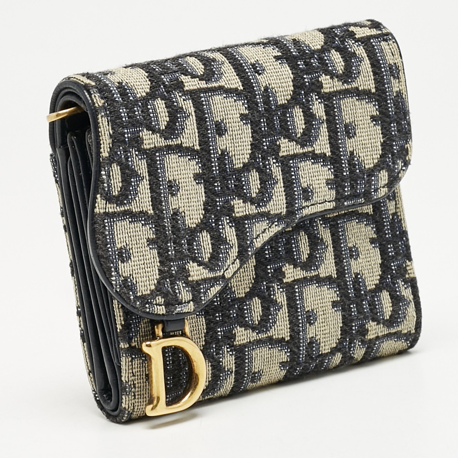 Merging iconic Dior heritage with a sculptural twist, the Saddle Lotus wallet in navy blue Oblique canvas is instantly recognizable. Compact yet capacious, it channels equestrian elegance with the signature saddle flap and antique gold tone ‘D’ charmCertified by The Luxury Closet - This item has gone through a detailed authentication process overseen by our experts. We offer a lifetime guarantee of authenticity on all our items. Import duties, taxes and charges are not included in the item price. These charges are the buyers responsibility. Please check with your country’s customs office to determine what these additional cost will be prior to buying. Our eBay Store About Us Contact Us Add to Favorite Sellers Dior Navy Blue Oblique Canvas Saddle Lotus Wallet $489.5 Merging iconic Dior heritage with a sculptural twist, the Saddle Lotus wallet in navy blue Oblique canvas is instantly recognizable. Compact yet capacious, it channels equestrian elegance with the signature saddle flap and antique gold tone ‘D’ charm Product Details Brand Color Navy Blue Dimensions Material Canvas Size Outsole Width Outsole Length Heel Height Includes Certified by The Luxury Closet This item has gone through a detailed authentication process overseen by our experts. We offer a lifetime guarantee of authenticity on all our items. How We Check The in-house team of experts at The Luxury Closet is highly trained to verify the authenticity and the condition of the luxury products. They ensure that only 100% authentic items are put on sale.The evaluation process is unique with its own mix of assessment criteria and differs according to the category. Each item is evaluated based on the following combination of hallmarks, hardware, stitching, symmetry, material, craftsmanship, stamping, codes, hologram stickers, and packaging. Our authenticators also check if the items have been modified or amended (e.g., aftermarket diamonds, replaced batteries, repaired bags, etc.) International Buyers Import duties, taxes and charges are not included in the item price. These charges are the buyers responsibility. Please check with your country’s customs office to determine what these additional cost will be prior to buying.