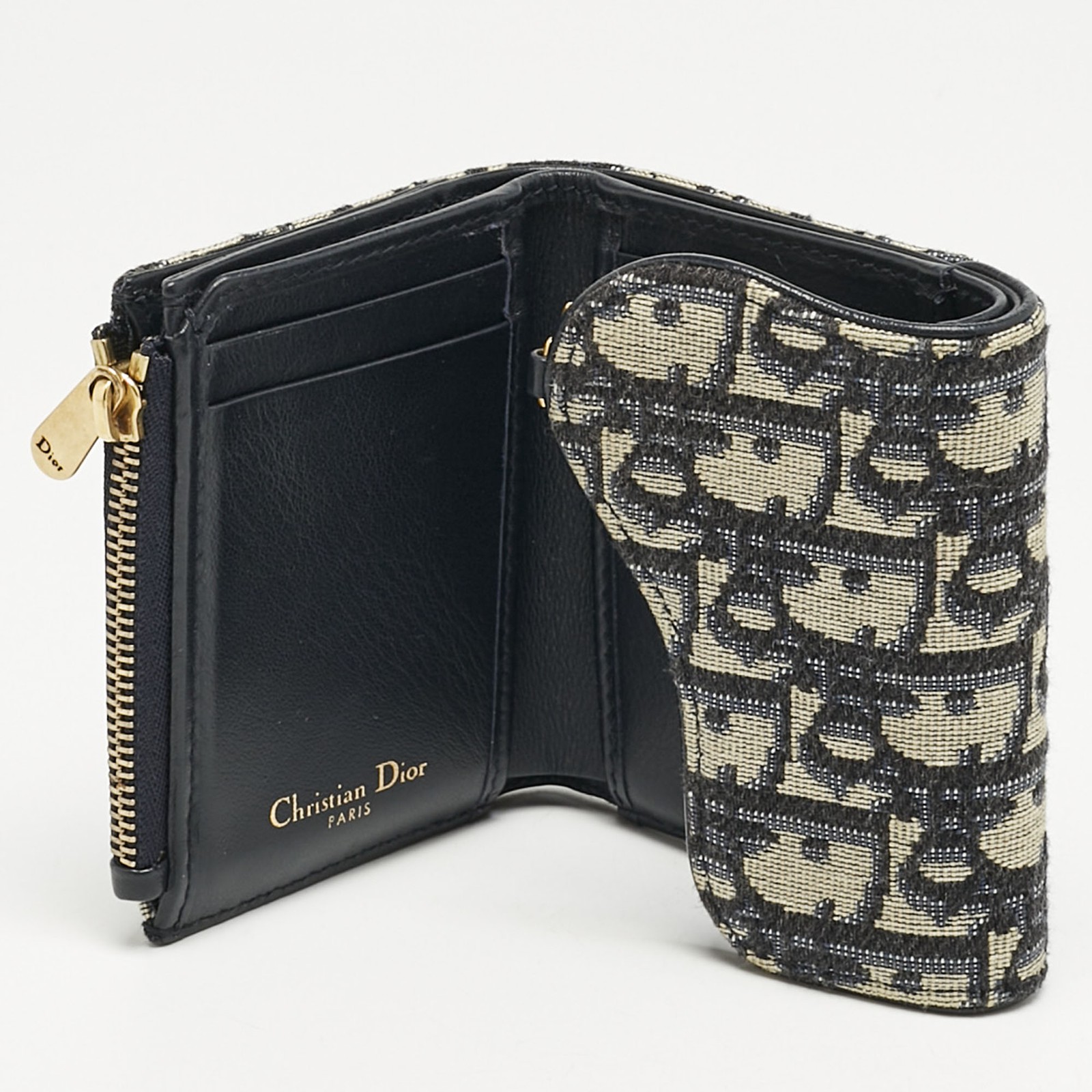 Merging iconic Dior heritage with a sculptural twist, the Saddle Lotus wallet in navy blue Oblique canvas is instantly recognizable. Compact yet capacious, it channels equestrian elegance with the signature saddle flap and antique gold tone ‘D’ charmCertified by The Luxury Closet - This item has gone through a detailed authentication process overseen by our experts. We offer a lifetime guarantee of authenticity on all our items. Import duties, taxes and charges are not included in the item price. These charges are the buyers responsibility. Please check with your country’s customs office to determine what these additional cost will be prior to buying. Our eBay Store About Us Contact Us Add to Favorite Sellers Dior Navy Blue Oblique Canvas Saddle Lotus Wallet $434.5 Merging iconic Dior heritage with a sculptural twist, the Saddle Lotus wallet in navy blue Oblique canvas is instantly recognizable. Compact yet capacious, it channels equestrian elegance with the signature saddle flap and antique gold tone ‘D’ charm Product Details Brand Color Navy Blue Dimensions Material Canvas Size Outsole Width Outsole Length Heel Height Includes Certified by The Luxury Closet This item has gone through a detailed authentication process overseen by our experts. We offer a lifetime guarantee of authenticity on all our items. How We Check The in-house team of experts at The Luxury Closet is highly trained to verify the authenticity and the condition of the luxury products. They ensure that only 100% authentic items are put on sale.The evaluation process is unique with its own mix of assessment criteria and differs according to the category. Each item is evaluated based on the following combination of hallmarks, hardware, stitching, symmetry, material, craftsmanship, stamping, codes, hologram stickers, and packaging. Our authenticators also check if the items have been modified or amended (e.g., aftermarket diamonds, replaced batteries, repaired bags, etc.) International Buyers Import duties, taxes and charges are not included in the item price. These charges are the buyers responsibility. Please check with your country’s customs office to determine what these additional cost will be prior to buying.