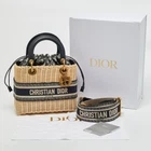 Dior reinterprets its iconic Lady Dior in a striking blend of navy canvas and natural rattan. This medium tote embodies laid back refinement with its artisanal weave and structured silhouette—an elegant piece that captures summer sophistication in signature house style.Certified by The Luxury Closet - This item has gone through a detailed authentication process overseen by our experts. We offer a lifetime guarantee of authenticity on all our items. Import duties, taxes and charges are not included in the item price. These charges are the buyers responsibility. Please check with your country’s customs office to determine what these additional cost will be prior to buying. Our eBay Store About Us Contact Us Add to Favorite Sellers Dior Navy Blue/Natural Rattan and Canvas Medium Lady Dior Tote $5483.5 Dior reinterprets its iconic Lady Dior in a striking blend of navy canvas and natural rattan. This medium tote embodies laid back refinement with its artisanal weave and structured silhouette—an elegant piece that captures summer sophistication in signature house style. Product Details Brand Color Blue Dimensions Material Canvas, Leather, Rattan Size Medium Outsole Width Outsole Length Heel Height Includes Certified by The Luxury Closet This item has gone through a detailed authentication process overseen by our experts. We offer a lifetime guarantee of authenticity on all our items. How We Check The in-house team of experts at The Luxury Closet is highly trained to verify the authenticity and the condition of the luxury products. They ensure that only 100% authentic items are put on sale.The evaluation process is unique with its own mix of assessment criteria and differs according to the category. Each item is evaluated based on the following combination of hallmarks, hardware, stitching, symmetry, material, craftsmanship, stamping, codes, hologram stickers, and packaging. Our authenticators also check if the items have been modified or amended (e.g., aftermarket diamonds, replaced batteries, repaired bags, etc.) International Buyers Import duties, taxes and charges are not included in the item price. These charges are the buyers responsibility. Please check with your country’s customs office to determine what these additional cost will be prior to buying.