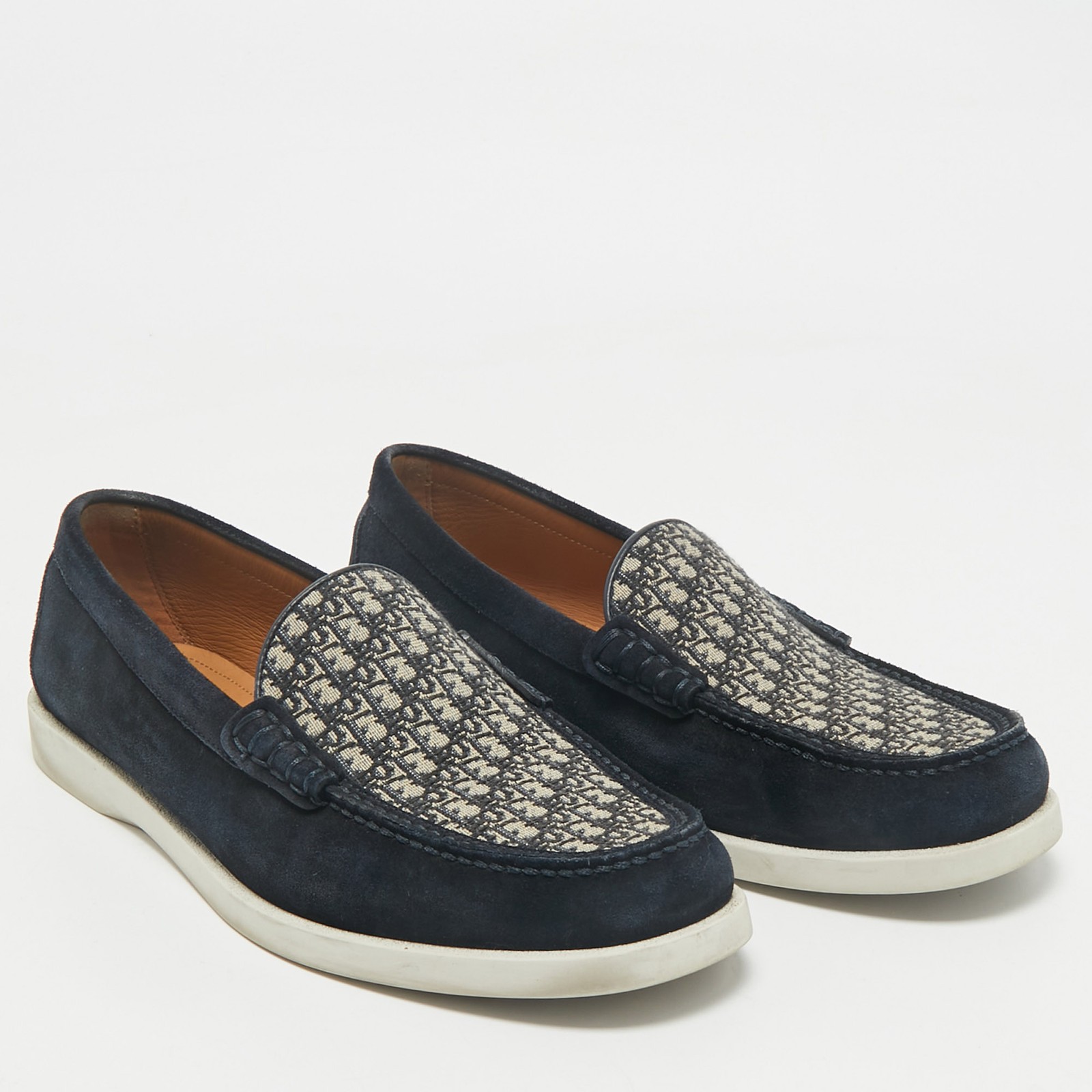 Dior’s Granville loafers mix textures with ease, combining smooth navy suede and signature Oblique jacquard for a look that’s both relaxed and recognizably refined.Certified by The Luxury Closet - This item has gone through a detailed authentication process overseen by our experts. We offer a lifetime guarantee of authenticity on all our items. Import duties, taxes and charges are not included in the item price. These charges are the buyers responsibility. Please check with your country’s customs office to determine what these additional cost will be prior to buying. Our eBay Store About Us Contact Us Add to Favorite Sellers Dior Navy Blue Suede/Beige and Oblique Jacquard Granville Loafers Size 41.5 $646.8 Dior’s Granville loafers mix textures with ease, combining smooth navy suede and signature Oblique jacquard for a look that’s both relaxed and recognizably refined. Product Details Brand Color Navy Blue Dimensions Material Jacquard, Suede Size 41.5 Outsole Width Outsole Length Heel Height Includes Certified by The Luxury Closet This item has gone through a detailed authentication process overseen by our experts. We offer a lifetime guarantee of authenticity on all our items. How We Check The in-house team of experts at The Luxury Closet is highly trained to verify the authenticity and the condition of the luxury products. They ensure that only 100% authentic items are put on sale.The evaluation process is unique with its own mix of assessment criteria and differs according to the category. Each item is evaluated based on the following combination of hallmarks, hardware, stitching, symmetry, material, craftsmanship, stamping, codes, hologram stickers, and packaging. Our authenticators also check if the items have been modified or amended (e.g., aftermarket diamonds, replaced batteries, repaired bags, etc.) International Buyers Import duties, taxes and charges are not included in the item price. These charges are the buyers responsibility. Please check with your country’s customs office to determine what these additional cost will be prior to buying.