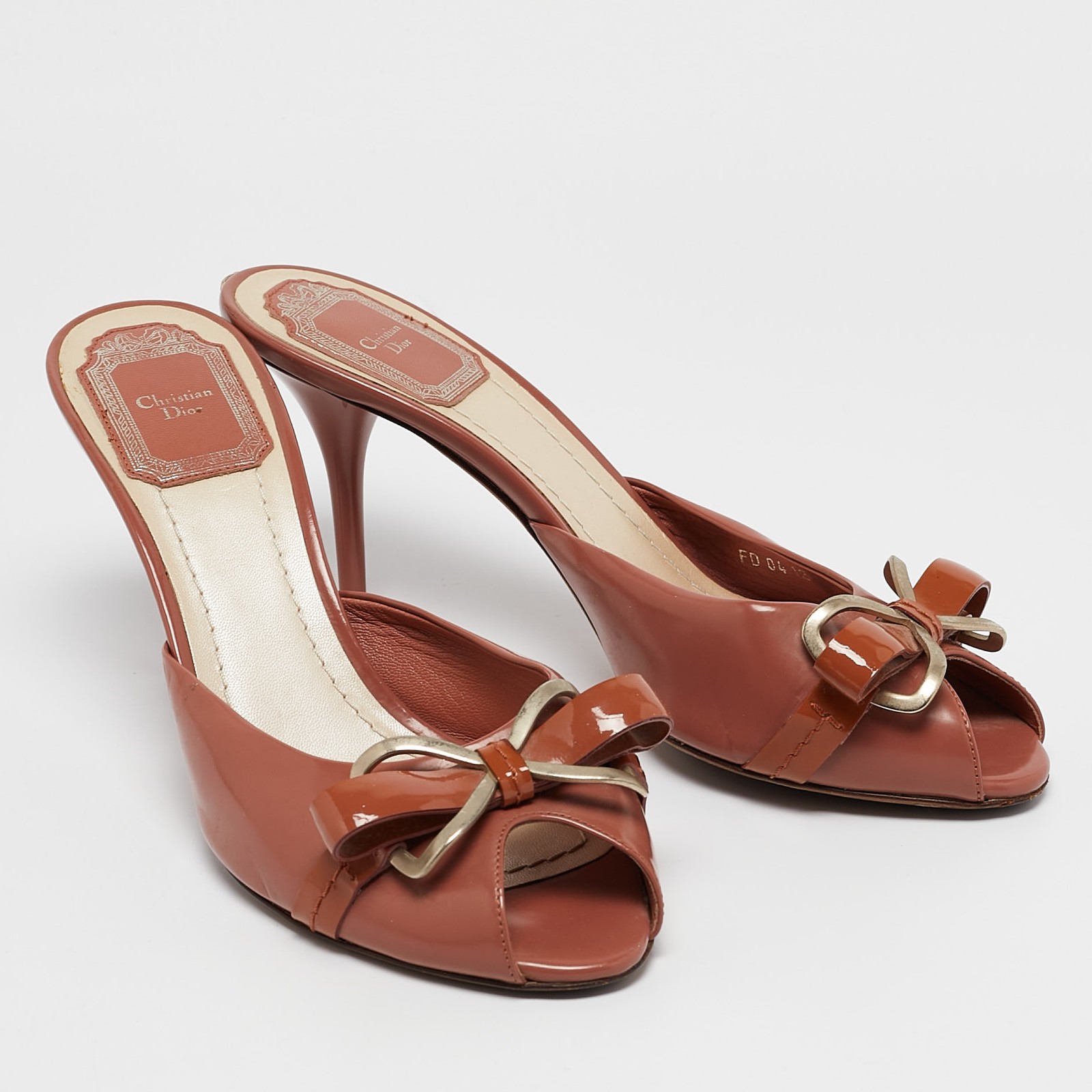 These sandals will frame your feet in an elegant manner. Crafted from quality materials, they flaunt a classy display, comfortable insoles and durable heels.Certified by The Luxury Closet - This item has gone through a detailed authentication process overseen by our experts. We offer a lifetime guarantee of authenticity on all our items. Import duties, taxes and charges are not included in the item price. These charges are the buyers responsibility. Please check with your country’s customs office to determine what these additional cost will be prior to buying. Our eBay Store About Us Contact Us Add to Favorite Sellers Dior Blush Pink Bow Chain Detail Open Toe Sandals Size 37 $224.4 These sandals will frame your feet in an elegant manner. Crafted from quality materials, they flaunt a classy display, comfortable insoles and durable heels. Product Details Brand Color Pink Dimensions Material Leather Size 37 Outsole Width 7 cm Outsole Length 24 cm Heel Height 9.5 cm Includes Original Dustbag Certified by The Luxury Closet This item has gone through a detailed authentication process overseen by our experts. We offer a lifetime guarantee of authenticity on all our items. How We Check The in-house team of experts at The Luxury Closet is highly trained to verify the authenticity and the condition of the luxury products. They ensure that only 100% authentic items are put on sale.The evaluation process is unique with its own mix of assessment criteria and differs according to the category. Each item is evaluated based on the following combination of hallmarks, hardware, stitching, symmetry, material, craftsmanship, stamping, codes, hologram stickers, and packaging. Our authenticators also check if the items have been modified or amended (e.g., aftermarket diamonds, replaced batteries, repaired bags, etc.) International Buyers Import duties, taxes and charges are not included in the item price. These charges are the buyers responsibility. Please check with your country’s customs office to determine what these additional cost will be prior to buying.