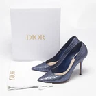 Dior Cheriepumps are designed in a textured metallic blue leather with a low heel and pointed toe. It makes a perfect partner to trousers or pantsuits as the metallic shade beautifully peeps out of the hemline. Carry a matching clutch to complete the chic lookCertified by The Luxury Closet - This item has gone through a detailed authentication process overseen by our experts. We offer a lifetime guarantee of authenticity on all our items. Import duties, taxes and charges are not included in the item price. These charges are the buyers responsibility. Please check with your country’s customs office to determine what these additional cost will be prior to buying. Our eBay Store About Us Contact Us Add to Favorite Sellers Dior Metallic Purple Micro Cannage Leather Cherie Pointed Toe Pumps Size 38 $253 Dior Cheriepumps are designed in a textured metallic blue leather with a low heel and pointed toe. It makes a perfect partner to trousers or pantsuits as the metallic shade beautifully peeps out of the hemline. Carry a matching clutch to complete the chic look Product Details Brand Color Purple Dimensions Material Leather Size 38 Outsole Width Outsole Length Heel Height Includes Certified by The Luxury Closet This item has gone through a detailed authentication process overseen by our experts. We offer a lifetime guarantee of authenticity on all our items. How We Check The in-house team of experts at The Luxury Closet is highly trained to verify the authenticity and the condition of the luxury products. They ensure that only 100% authentic items are put on sale.The evaluation process is unique with its own mix of assessment criteria and differs according to the category. Each item is evaluated based on the following combination of hallmarks, hardware, stitching, symmetry, material, craftsmanship, stamping, codes, hologram stickers, and packaging. Our authenticators also check if the items have been modified or amended (e.g., aftermarket diamonds, replaced batteries, repaired bags, etc.) International Buyers Import duties, taxes and charges are not included in the item price. These charges are the buyers responsibility. Please check with your country’s customs office to determine what these additional cost will be prior to buying.