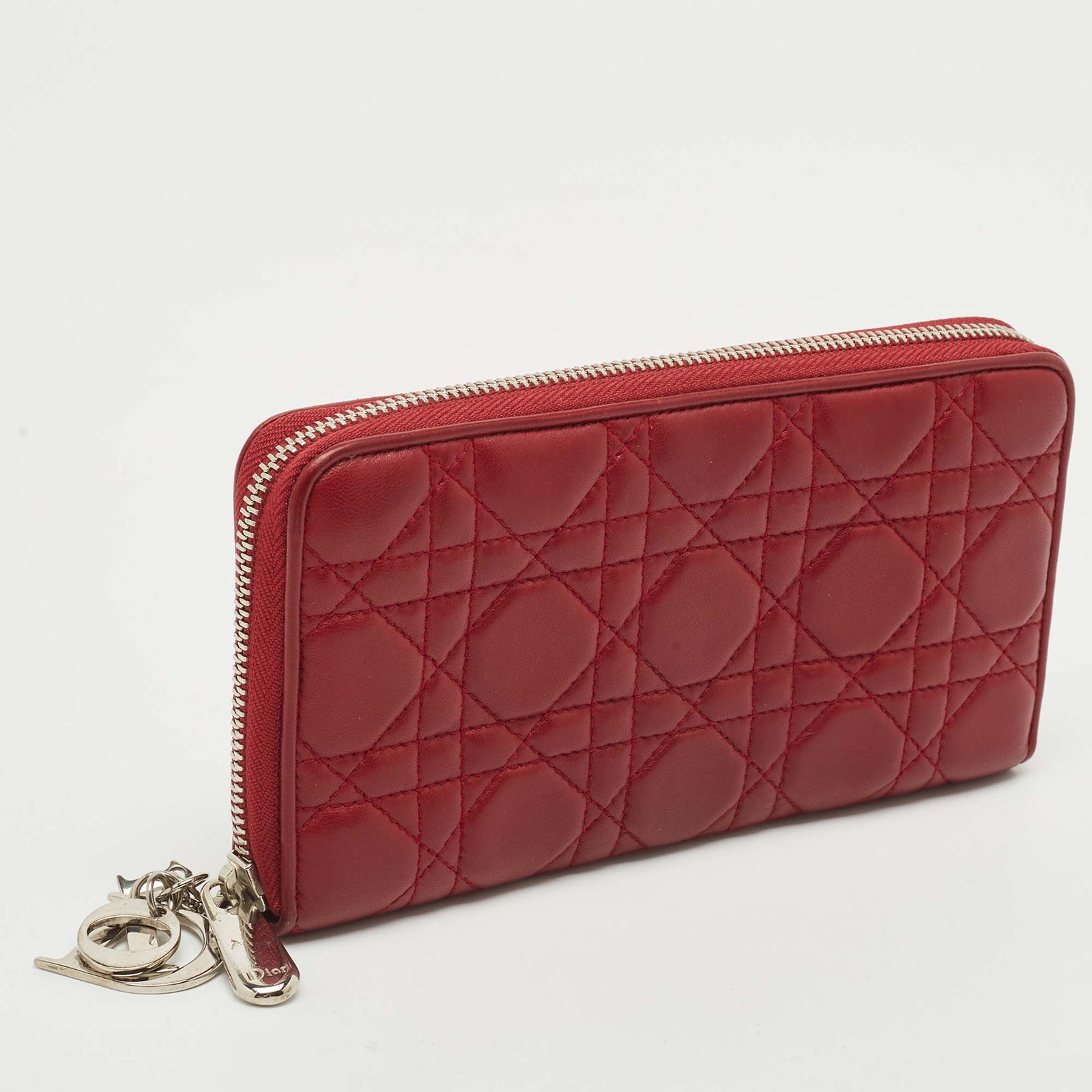 This authentic pre loved Dior Lady Dior wallet in striking red Cannage leather offers both beauty and organization, complete with a zip around design and signature Dior charms.Certified by The Luxury Closet - This item has gone through a detailed authentication process overseen by our experts. We offer a lifetime guarantee of authenticity on all our items. Import duties, taxes and charges are not included in the item price. These charges are the buyers responsibility. Please check with your country’s customs office to determine what these additional cost will be prior to buying. Our eBay Store About Us Contact Us Add to Favorite Sellers Dior Red Cannage Leather Lady Dior Zip Continental Wallet $559.9 This authentic pre loved Dior Lady Dior wallet in striking red Cannage leather offers both beauty and organization, complete with a zip around design and signature Dior charms. Product Details Brand Color Red Dimensions Material Leather Size Outsole Width Outsole Length Heel Height Includes Certified by The Luxury Closet This item has gone through a detailed authentication process overseen by our experts. We offer a lifetime guarantee of authenticity on all our items. How We Check The in-house team of experts at The Luxury Closet is highly trained to verify the authenticity and the condition of the luxury products. They ensure that only 100% authentic items are put on sale.The evaluation process is unique with its own mix of assessment criteria and differs according to the category. Each item is evaluated based on the following combination of hallmarks, hardware, stitching, symmetry, material, craftsmanship, stamping, codes, hologram stickers, and packaging. Our authenticators also check if the items have been modified or amended (e.g., aftermarket diamonds, replaced batteries, repaired bags, etc.) International Buyers Import duties, taxes and charges are not included in the item price. These charges are the buyers responsibility. Please check with your country’s customs office to determine what these additional cost will be prior to buying.