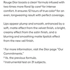 Dior Rouge Dior #434 Promenade Satin Finish Lipstick NIB + Dior Pouch. FORMULA The signature ingredient of Rouge Dior lipstick, peony flower extract helps hydrate lips and improve skin quality to reveal the lipstick's most vibrant color. Pomegranate flower extract complements the action of peony, bringing suppleness and softness, to plump the look of lips and smooth grooves and fine lines. Shea butter offers intense comfort and nourishment for smooth lips and an even lipstick application 1. Apply the Rouge Dior balm as a hydrating base. Use a tissue to remove any excess product before applying lipstick. 2. Line the lips with Rouge Dior Contour lip pencil. 3. For an even and sophisticated result, apply Rouge Dior from the center of the lips outwards. Rouge Dior boasts a clean' formula infused with two times more floral lip care? for intense comfort. It ensures 12 hours of true color for an even, longwearing result with perfect coverage. Lips appear plump and smooth, enhanced by a soft, matte effect from the velvet finish, a bright, creamy effect from the satin finish, and a blurring and smoothing matte lipstick effect from the new veil finish. ' For more information, visit the Dior page "Our Commitments. 2 Vs. the previous formula. 3 Instrumental test on 31 subjects.