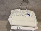 This Dior tote is a dream! The white leather with eyelet charms gives it such a chic, summery vibe. It's surprisingly roomy—fits A4 docs easily—and still looks pristine despite minor wear. The slight stains are barely noticeable, and the leather feels luxurious. Perfect for elevating any outfit while keeping things practical. Love how lightweight yet durable it is! A must-have for Dior fans who want style and function.