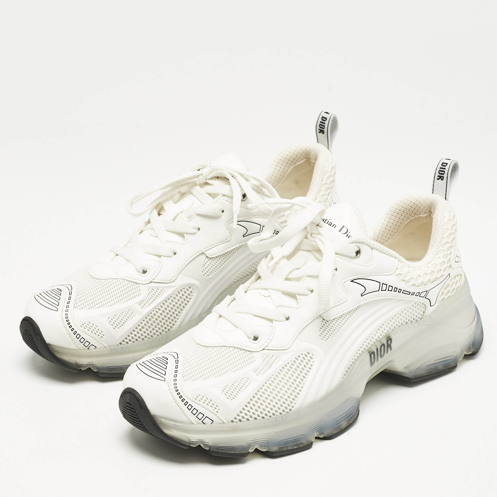 These Dior mens sneakers feature pristine white leather with a classic lace up design and side twist details—perfect for an elevated casual look.Certified by The Luxury Closet - This item has gone through a detailed authentication process overseen by our experts. We offer a lifetime guarantee of authenticity on all our items. Import duties, taxes and charges are not included in the item price. These charges are the buyers responsibility. Please check with your country’s customs office to determine what these additional cost will be prior to buying. Our eBay Store About Us Contact Us Add to Favorite Sellers Dior White Leather and Mesh Vibe Lace Up Sneakers Size 42 $605 These Dior mens sneakers feature pristine white leather with a classic lace up design and side twist details—perfect for an elevated casual look. Product Details Brand Color White Dimensions Material Leather, Mesh Size 42 Outsole Width Outsole Length Heel Height Includes Certified by The Luxury Closet This item has gone through a detailed authentication process overseen by our experts. We offer a lifetime guarantee of authenticity on all our items. How We Check The in-house team of experts at The Luxury Closet is highly trained to verify the authenticity and the condition of the luxury products. They ensure that only 100% authentic items are put on sale.The evaluation process is unique with its own mix of assessment criteria and differs according to the category. Each item is evaluated based on the following combination of hallmarks, hardware, stitching, symmetry, material, craftsmanship, stamping, codes, hologram stickers, and packaging. Our authenticators also check if the items have been modified or amended (e.g., aftermarket diamonds, replaced batteries, repaired bags, etc.) International Buyers Import duties, taxes and charges are not included in the item price. These charges are the buyers responsibility. Please check with your country’s customs office to determine what these additional cost will be prior to buying.