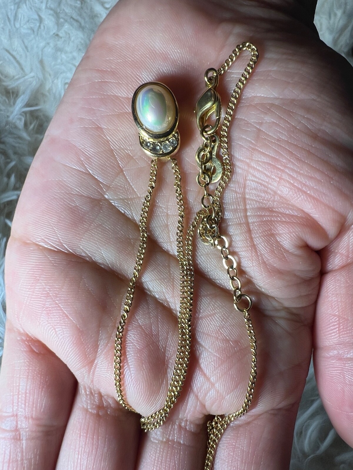 Elevate your ensemble with this exquisite Christian Dior fashion jewelry necklace, featuring a generous 18-inch length that sits gracefully at the base of the neck. Adorned with lustrous faux pearls, this piece exudes classic elegance while adding a touch of modern sophistication to any outfit.Crafted with the exceptional quality synonymous with the Dior brand, this necklace is a versatile accessory perfect for both casual and formal occasions. Its timeless design ensures it will remain a cherished addition to your jewelry collection for years to come. Please keep in mind it’s authentic Christian Dior necklace. It’s not real gold and faux pearl. There will be sign of usage.