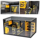 Note: This item is not included car model and figures model,kindly please know it! Product name: 1:24 Simulated DIY Repair Shop Alloy Light MINI Model Diecast Car Toy Garage Scene Decoration Holiday Gift Boys Toys Product material: tire profile alloy+ABS+tire rubber (main material: ABS plastic) Product function: DIY assembly, storage, with light Product color: black Specification after assembly: 27 * 17.3 * 14.5cm Please compare the box dimension with the dimension of action figures or car model before purchase. Thank you.