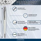 Diplomat Magnum Ball Point Pen – Pearl White and Plastic Casing with Chrome Fittings Shinny Parts Made in Germany, DIPLOMAT writing instruments have been manufactured using traditional methods of craftsmanship since 1922. Diplomat's Magnum SoftTouch Pen features a lightweight, plastic barrel that makes it ideal for everyday use. But don't be fooled: This German-made writing instrument performs up to Diplomat's high standards. The body has a "no-slip" lacquer coating which gives it a very soft grip. For starters, the durable ABS plastic body features a soft matte texture (hence the SoftTouch name) that offers excellent grip in conjunction with a perfectly balance design. The ergonomic grip zone is simple but interesting tapered design and suited to offer maximum comfort when taking notes or creating a masterpiece. The Tip, Pocket Clip and End Cap Parts are solid metal and have been plated with a durable Chrome finish for a brilliant shin that complements the body. There is a clear Emblem imbedded in the End Cap of the pen the reads "DIPLOMAT Product of Germany" for authenticity. This is a quality writing instrument manufacturing in Germany. The DIPLOMAT Magnum Ball Point Pen is a "Click Activated Pen" and comes equipped with a smooth writing SCHMIDT® easyFLOW9000 Medium Tip Black Ink large capacity refill. (note – on our Lanier Pen site you can set up the option for the customer to select the ink color. Either Black or Blue) This Magnum ballpoint pen is one of Diplomat's most affordable offerings and is offer by Lanier Pen's in these colors; Aegean Blue, Burned Red, Crow Black, Indio Blue and Pearl White. The special no-slip lacquer gives the body a soft touch. It comes equipped with a smooth writing SCHMIDT® easyFLOW9000 Medium Tip Refill and comes packaged in a nicely designed purple DIPLOMAT MAGNUM pen box. Features Color: Pearl White Plastic Casing Chrome Fittings Special No-Slip Lacquer Ergonomic Grip Zone Mechanism: Cap on / Cap Off Ballpoint Pen With High Capacity Refill Chrome plated component set (Tip, Clip & End Cap) Body Shape Ball Point Pen: TAPER Includes Schmidt easyFLOW9000 Medium Refill Matching Fountain Pen Available Brand: Diplomat Made In Germany Technical Specs Width: 0.48" (12.2 mm) Length: 5.33" inches (135 mm) Width Tip Section: 0.32" inches (8.13 mm) Width Cap Section: 0.48" inches (12.19 mm) Pen Weight: 0.43 ounces (12 grams) Weight: 23 grams (with refill) You may also interest to buying the below items! Diplomat Magnum Ball Point Pen – Burned Red Diplomat Magnum Ball Point Pen – Burned Red Diplomat Magnum Ball Point Pen – Crow Black Diplomat Magnum Ball Point Pen – Crow Black Diplomat Magnum Ball Point Pen – Indigo Blue Diplomat Magnum Ball Point Pen – Indigo Blue Diplomat Magnum Ball Point Pen – Pearl White Diplomat Magnum Ball Point Pen – Pearl White Diplomat Magnum Ball Point Pen – Aegean Blue Diplomat Magnum Ball Point Pen – Aegean Blue Diplomat Magnum Fountain Pen – Burned Red Diplomat Magnum Fountain Pen – Burned Red Diplomat Magnum Fountain Pen – Crow Black Diplomat Magnum Fountain Pen – Crow Black Diplomat Magnum Fountain Pen – Indigo Blue Diplomat Magnum Fountain Pen – Indigo Blue Diplomat Magnum Fountain Pen – Pearl White Diplomat Magnum Fountain Pen – Pearl White Diplomat Magnum Fountain Pen – Aegean Blue Diplomat Magnum Fountain Pen – Aegean Blue