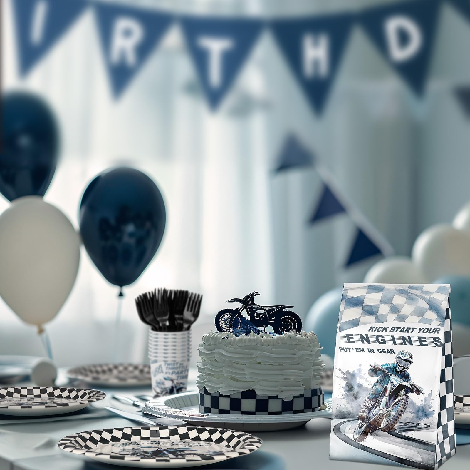 Dirt Bike Party Plates and Napkins - Dirt Bike Party Decorations - Dirt Bike Party Tableware - Dirt Bike Party Favors - Dirt Bike Party Supplies Serves 20 Guests Comprehensive Dirt Bike Tableware Set: Our Dirt Bike party decorations package includes everything you need to serve 20 guests. It features 20 dirt bike party paper dinner plates (9''), 20 dessert plates (7''), 20 cool dirt bike-themed napkins (6.5''), and 20 sets of sturdy plastic forks. This complete party kit ensures a seamless and exciting dining experience. Premium Quality Assurance: Crafted from high-quality paper, our dirt bike decor plates and napkins are not only visually striking but also non-toxic, odorless, and incredibly durable. The vibrant dirt bike patterns and colors are fade-resistant, creating an energetic and adventurous atmosphere for your event. Exciting Dirt Bike Decor: Bring the thrill of motocross to your party with dynamic dirt bike-themed decorations. Each item is designed to capture the fast-paced spirit of motocross, adding energy and excitement to your celebration. Kids and adults alike will be captivated by the bold dirt bike graphics, filling your event with fun and anticipation. Effortless Enjoyment: Hosting a memorable dirt bike-themed party has never been easier. Our thoughtfully arranged party set allows you to focus on celebrating with friends and family, as post-party cleanup is quick and hassle-free. Enjoy every moment without the worry of extensive cleanup afterward. Versatile Event Appeal: Whether it's a birthday, motocross-themed gathering, or any other special occasion, our dirt bike-themed party supplies are versatile and perfect for a range of events. Give your guests an unforgettable experience with this lively dirt bike party ensemble, making your celebration a standout event.