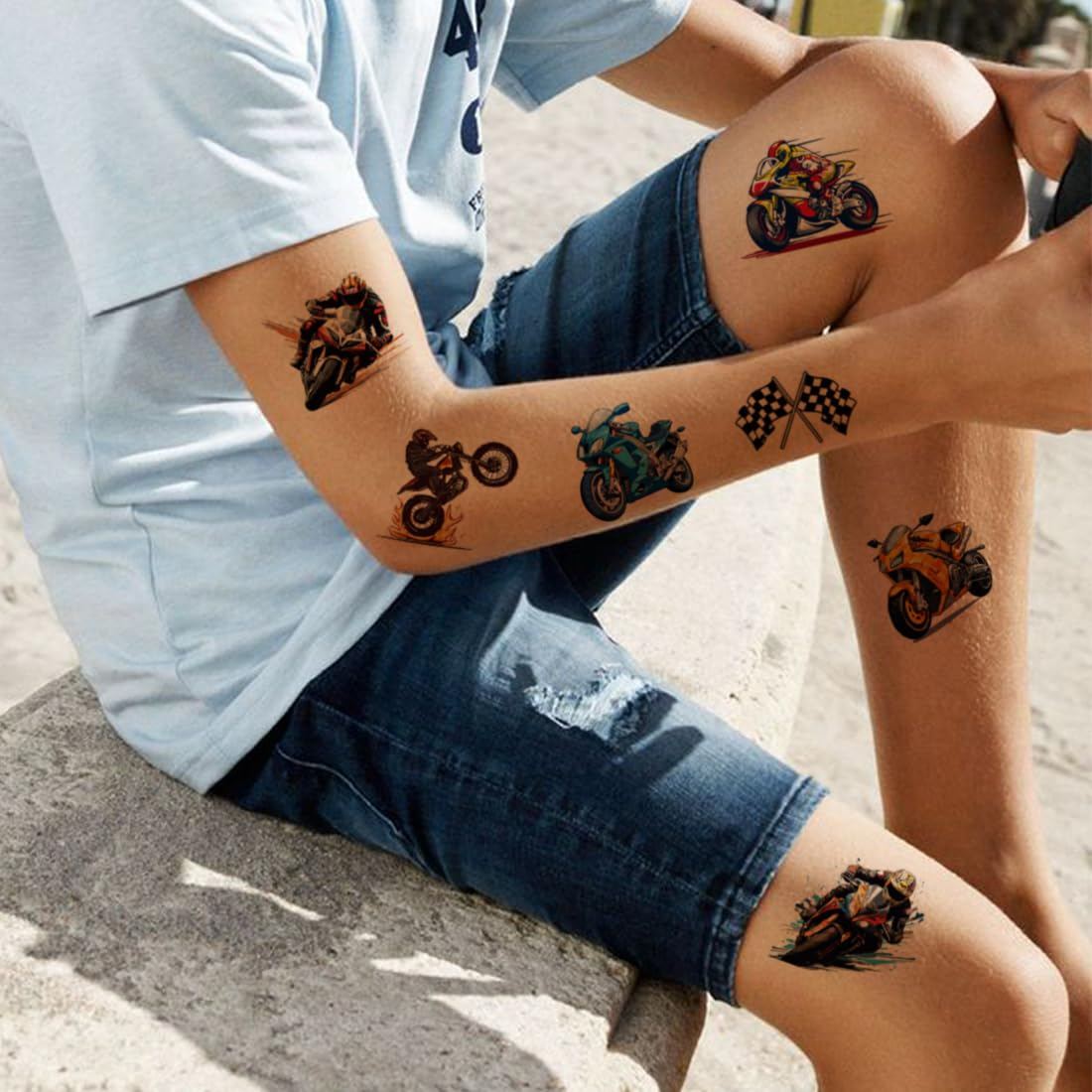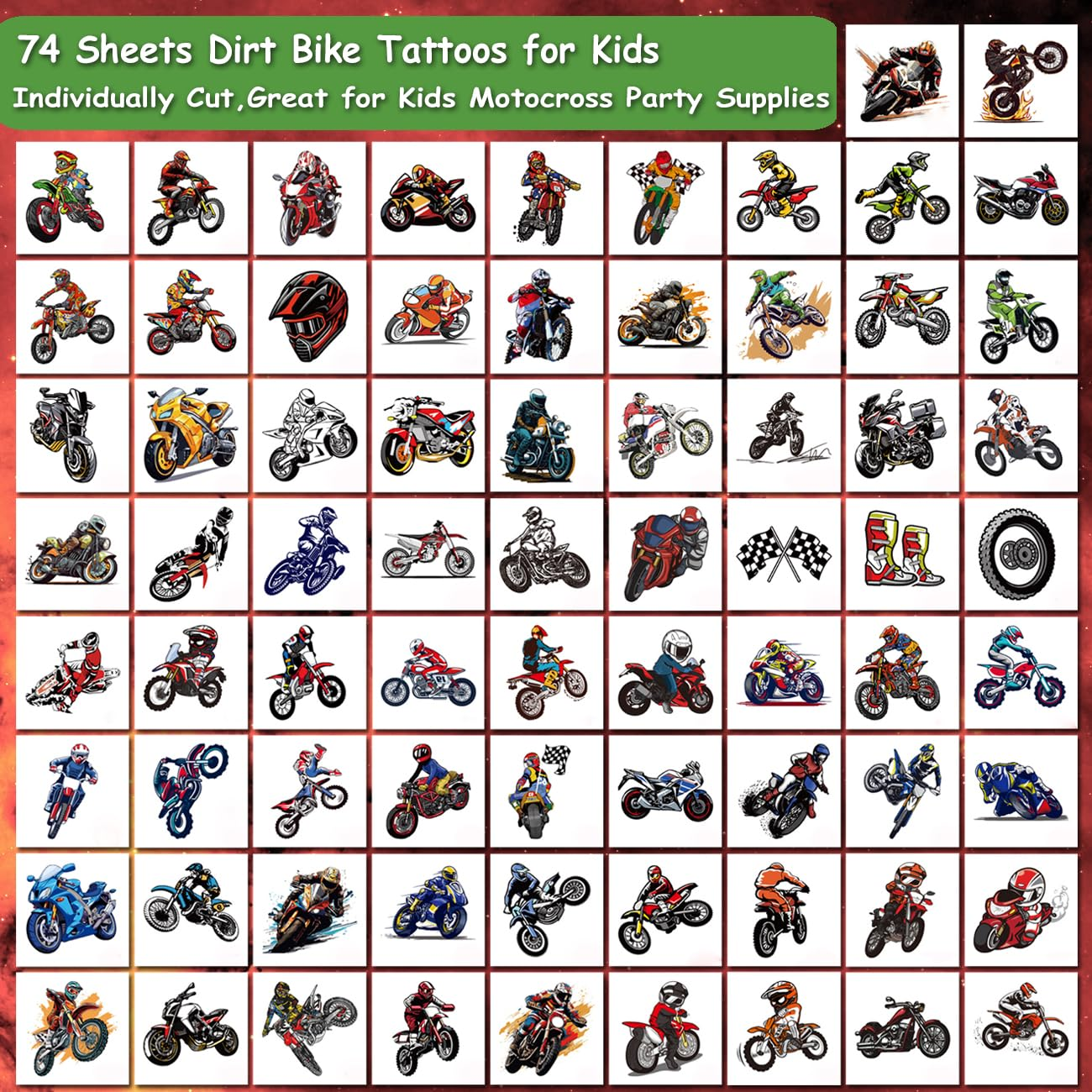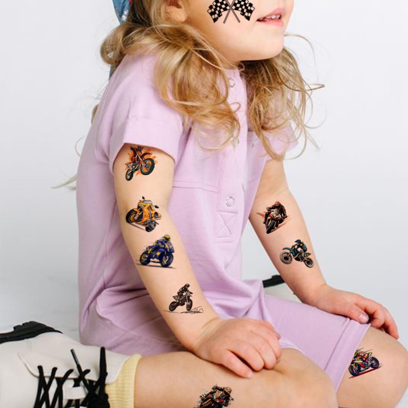 Dirt Bike Temporary Tattoos for Kids Party Supplies - 74 Individually Sheets Motorcycle Tattoos for Boys Motocross Birthday Party Favors Goodie Bag Fillers ⚡Set Includes 74 Styles Dirt Bike Temporary Tattoos for Kids Party Supplies-- Super cool and fun kids temporary tattoos. This tattoo sticker set contains many fun elements that kids will like . Add an individual extra touch of fun to a children’s party or event with Charlent tattoos. ⚡Individually Wrapped Sheets No Need to Cut -- 74 PCS motorcycle tattoos individually wrapped to be easily included in a party gift bag. Easy to share,even if a lot of people's parties, you can have a different tattoo with others.These adorable tattoos will keep you and your little ones – and their friends – occupied for a while. Great for playdates, parties, or rainy days. ⚡Kids Dirt Bike Theme Tattoo Stickers -- Our kids dirt bike tattoos are safe for your little ones,each tattoo is made of standard quantity material and green paper, which is safe and non-toxic. These are kid removable temporary tattoos! With these fake tattoos, your kids can deck themselves out with colourful designs that wash or peel off later. Have fun with our collection of removable, temorary tattoos for kids. ⚡Premium Quality,Waterproof and Sweat-resistant -- These unique tattoos typically last about 3-6 days.Can be removed with oil, makeup remover, or by scrubbing off. Safe to wear at the beach or in the shower or pool. ⚡Kids Dirt Bike Tattoos for All Occasions -- These awesome tattoos can be used in various occasions, such as motocross birthday party supplies, party decorations, kids motorcycle party favors, party bags, DIY decorations, pool and the beach or gift for kids and rewards. Kids temporary tattoos are the best party favors and goodie bags fillers ever for any kind of celebration! Product Description CHARLENT 74 Sheets Dirt Bike Temporary Tattoos for Kids - Individually Cut and Ready to Go! Your kid wants a tattoo? No need to worry mom! These are kids removable temporary tattoos! With these fake tattoos, your kids can deck themselves out with colourful designs that wash or peel off later. Have fun with our collection of removable, temorary tattoos for kids. Easy to apply! Remove the protective plastic. Place the sticky side on the skin where you want the tattoo to be. Wet the tattoo with a lukewarm cloth or hold it under running water for around 20 seconds. Remove the paper. Wear it like a rockstar! Removal! Our children’s tattoos stay on for 1-14 days depending on skin type and tattoo placement. The tattoos are easily washed off with soap and water so you can remove them anytime you want after application. Note: Do not apply to sensitive or damaged skin, skin around the eyes and skin prone to allergy. Dimensions 2.05 inches x 3.74 inches x 0.47 inches. Weight: 1.06 oz Specifications Style dirt bike Color Multicolor Water Resistance Level Waterproof Country of Origin China Manufacturer recommended age 36 months - 12 years Pattern Dirt Bike Package Dimensions 3.74 x 2.05 x 0.47 inches; 1.06 ounces Shipping: Shipped from the USA. Fast delivery within 2–3 days. Payment: PayPal, credit card, bank transfer. Returns: 30-day free return – we cover the shipping cost. Quality: Made in Europe/USA/China. No customs fees. VAT invoice on request. Feedback: You’ll automatically receive positive feedback after payment.