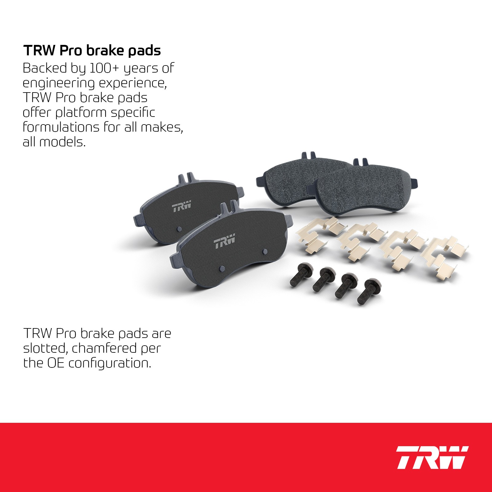 TRW TRH0740 Front Disc Brake Pad Set for Mercedes-Benz E300: 1998 - 1999, Mercedes-Benz E320: 1996 - 1999, Mercedes-Benz E420: 1997 TRW Pro brake pads are backed by 100+ years of engineering experience, offering platform specific formulations for all makes, all models. With unparalleled quality, safety, manufacturing, testing and innovation, get the job done right the first time. TRW designs braking systems for over half the world’s OE vehicles - meaning that the product you are putting on your vehicle is designed to the OE specifications. This means you are getting the braking performance needed for that safety-critical stopping distance. - Fits right, the first time, with all brake pads slotted and chamfered according to OE specifications - Hardware included where applicable - Copper Free for less impact on the environment ]]>