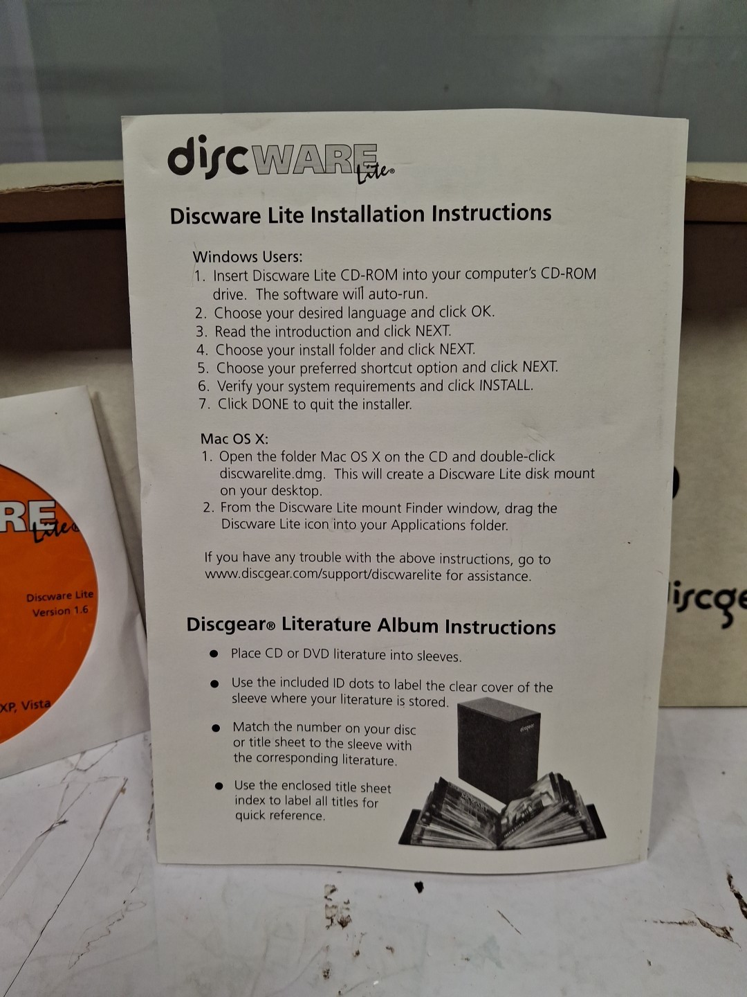 The DiscGear Selector 100 CD DVD Blu-Ray Disc Holder Storage System in black is a convenient and stylish solution for organizing and storing your media collection. Made of rigid plastic, this flip-style holder is designed to accommodate CD, DVD, and Blu-ray discs effortlessly. With its sleek design and compact size, it is perfect for keeping your discs neat and easily accessible. Made by DiscGear, this model is manufactured in China, ensuring quality and durability for your media storage needs. Brand new any questions message me