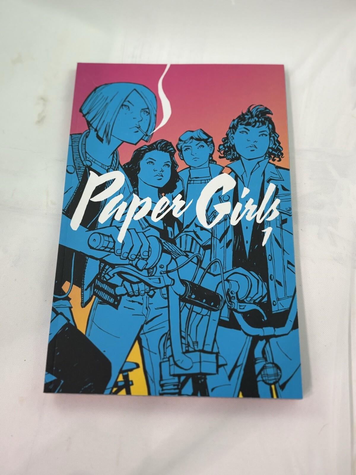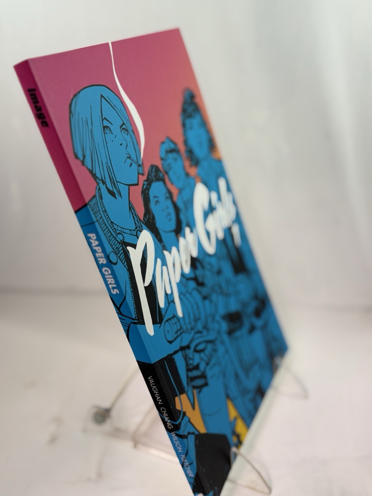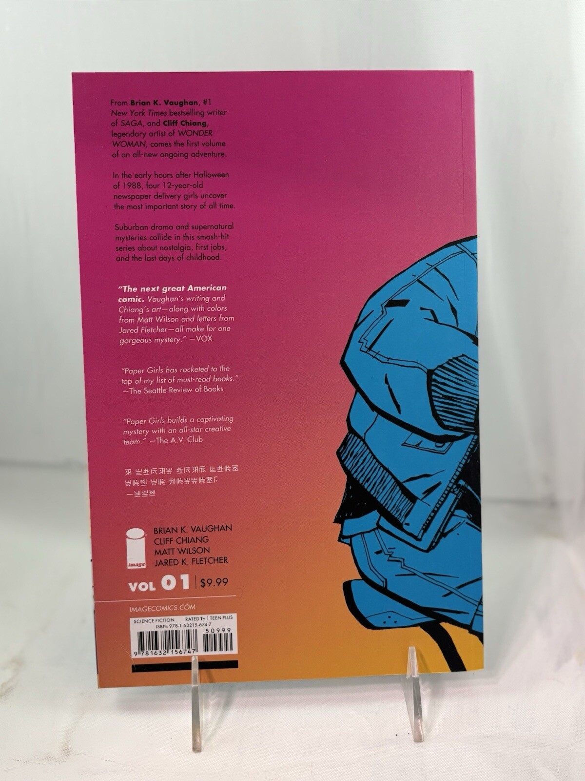 First Printing. Now a TV SERIES!! The comic book "Paper Girls #1" is a horror and science fiction story published by Image Comics and Malibu Comics in March 2016. The story is written by Brian K. Vaughan and Matthew Wilson, with art by Cliff Chiang. The plot follows a group of teenage girls who deliver newspapers in a fictional town in the 1990s and encounter supernatural and surreal events. The characters include Tiffany Quilkin, Erin Tieng, and Terry, as well as other supporting characters such as Editrix, Restorer Alister, and Jude. The cover artists are Matthew Wilson and Cliff Chiang. The series title is "Paper Girls" and the issue number is 1. The era is modern age (1992-now) and the tradition is US comics. The genre is horror & sci-fi or suspense and science fiction.