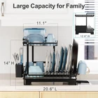 Dish Drying Rack 2-Tier Glass Utensil Holder & Large Kitchen Shelf Dish Drainer [Innovative 2-Tier Dish Rack Unrestricted by Cabinet] Our rack combines large capacity of traditional 2 tier dish drying rack, and innovatively breaks the cabinet height limit. The plate slot at the bottom fits for all sizes plates, and the bowl area on the top unconstrained. A truly user-focused necessity for kitchen organization [Exclusive Pan Slot & Large Plate Slot] Unlike ordinary dishes drying rack that can't hold pan, we've designed a slot for pan, thick plate or cutting board - no more worry your pan occupying other utensils' space. It also boasts 4 height-unlimited plate slots, accommodate any size of plates - including 11". Size is 20.6"L x 12.6"W x 14"H [Large Capacity - 20% Extra Capacity] Our drying rack kitchen sports an additional 20% capacity compared to ordinary two-tier rack. The bottom rack comfortably store 8 plates (4 slots for plates within 9", 4 slots with no size limit), along with mugs or glasses. The top rack can hold about 7-10 bowls or diverse food boxes [Versatile Utensil Holder & 360° Drainage System] Our dish drainer's utensil holder is divided into 3 parts for easy access utensils and includes a spout channels water into the tray for dry countertop. The tray's tilt design effectively wards off water accumulation. Its rotating spout allows adjust the drainage direction based on sink's position [Sturdy and Rust-Resistant] Built from high-quality metal and double-coated with nanotechnology tested against 24-hour salt exposure, our dish dryer rack ensure long-lasting durability and rust-resistance; It comes with clear installation instructions for ease of use. The screw-based setup is substantially more robust than buckle setup Product Description The video showcases the product in use. The video guides you through product setup. The video compares multiple products. The video shows the product being unpacked. Innovative design, with plates on the bottom and bowls on top, addresses the traditional 2-tier dish rack's issue of oversized plates so limited by cabinet height when place on top. GSLife large 2-tier dish drying rack optimizes countertop vertical space . Unhindered Storage, Even Under Cabinets! No more worrying about where to put the big plates! The 2-tier dish drainer rack can work! What makes this 2 tier dish rack different from other racks? Our plate slots are designed at the bottom so that you can put any large sized plate or pan without being restricted by cabinet height. What is its dimension? 20.6"L x 12.6"W x 14"H, the rack with cup holder, utensil holder, pan slot and large plate slot, great for storage your tableware and keep kitchen neat. Is it easy to install? It comes with detailed installation instructions and videos for reference, requiring only simple installation. 12.6 "h x 20.67 "h x 13.98 "h. Weight: 4.0 lb Product Dimensions 20.67"D x 12.6"W x 13.98"H Mounting Type Countertop Mount Color 2 Tier Black (Large) Item Dimensions D x W x H 20.67"D x 12.6"W x 13.98"H Material Metal Material Type Metal Item Weight 4 Pounds Recommended Uses For Product Dishware, Pans, Cutting Boards, Utensils Additional Features Sturdy Special Feature Sturdy